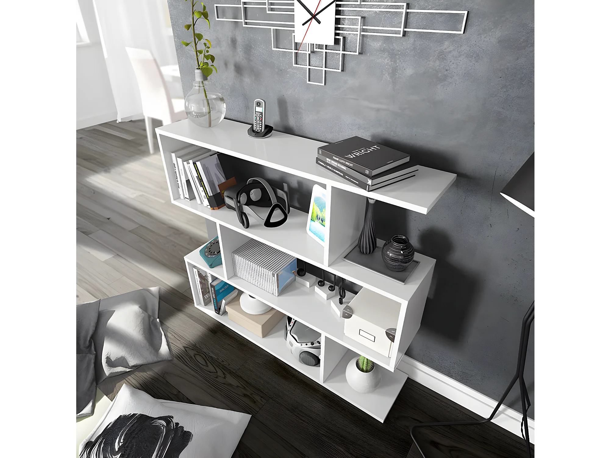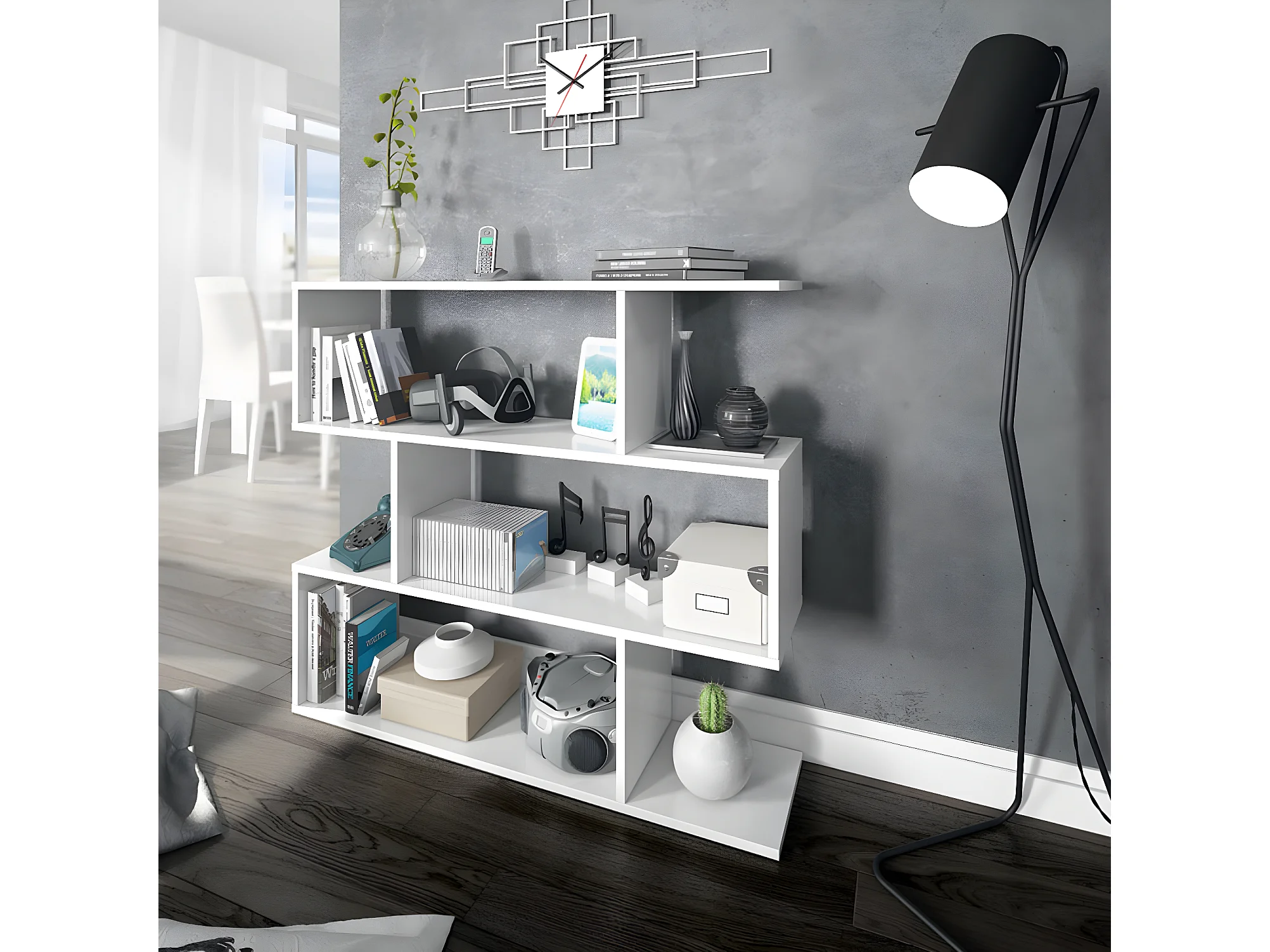 Bibliothèque séparatrice de pièce à 4 niveaux blanc 143,5x29x143,5cm
