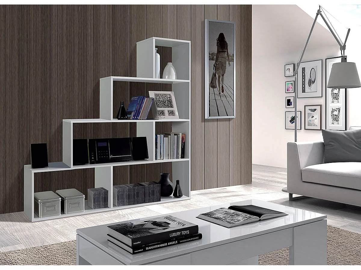 Bibliothèque avec 4 étagères coloris Blanc Brillant en mélamine - Dim: 145 x 145 x 29 cm