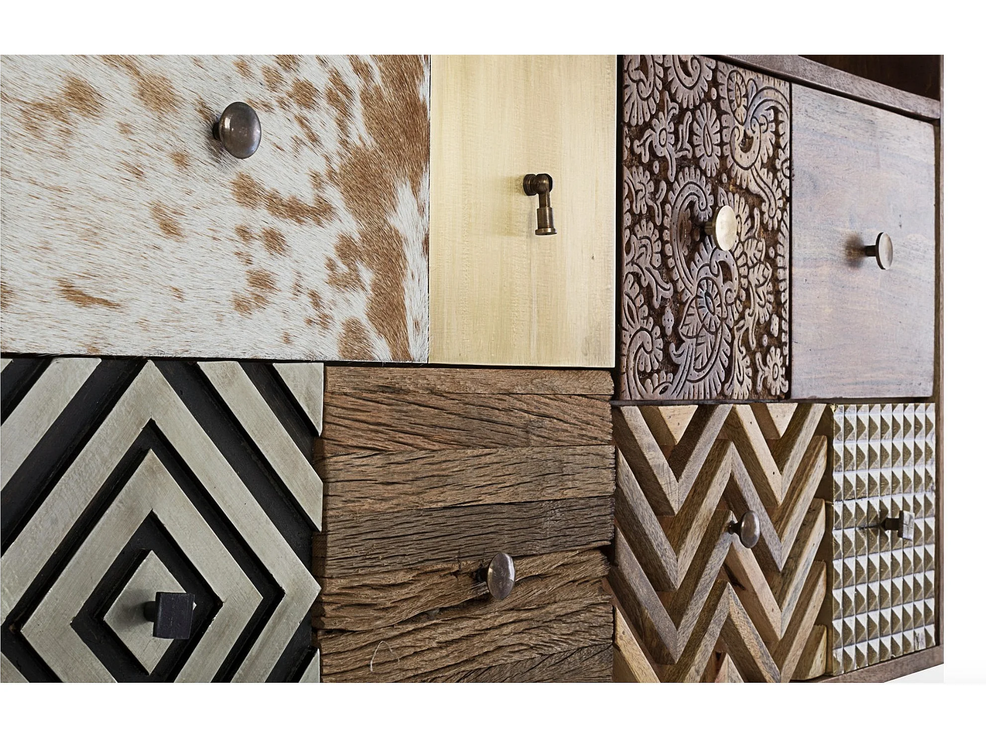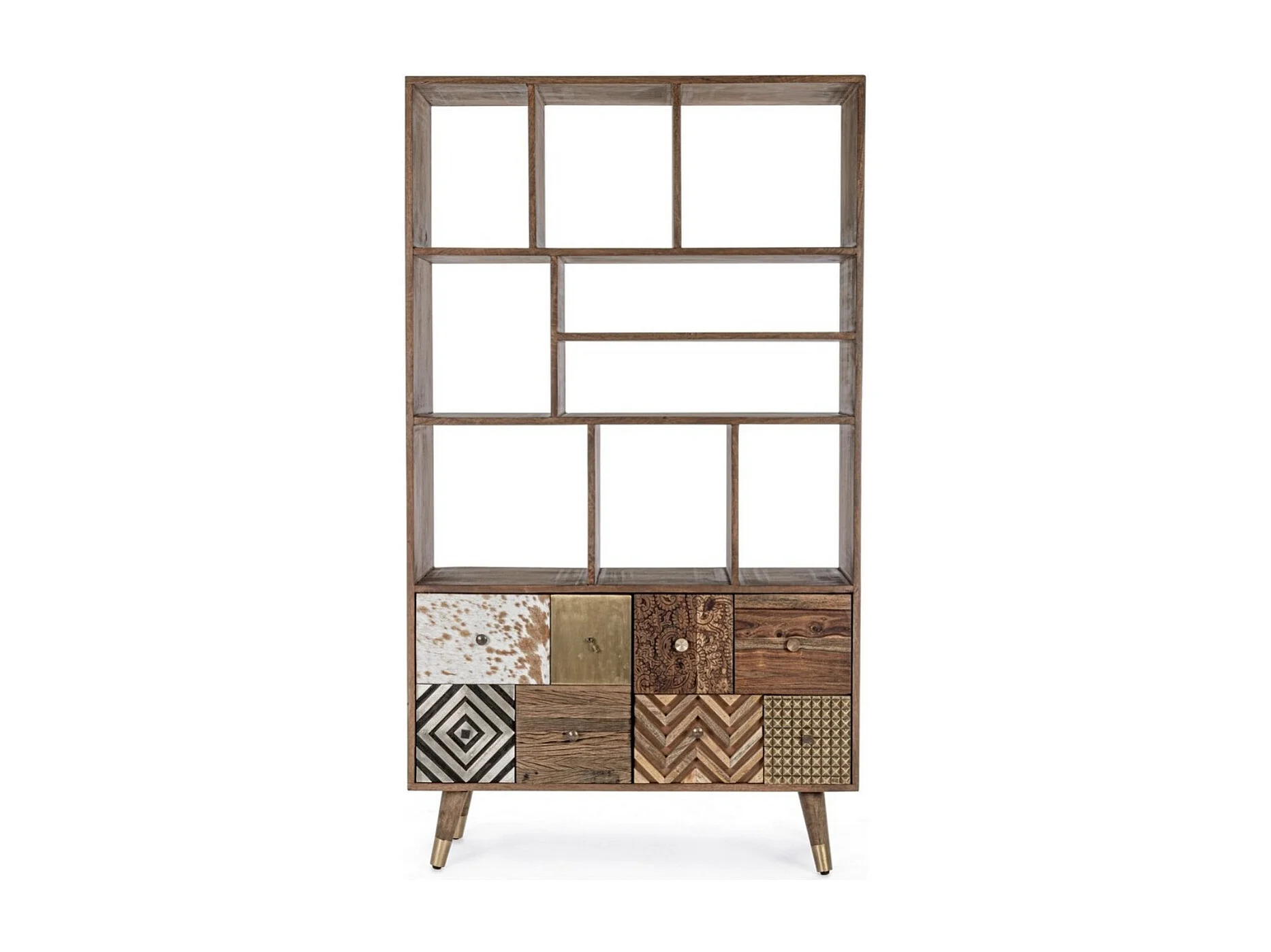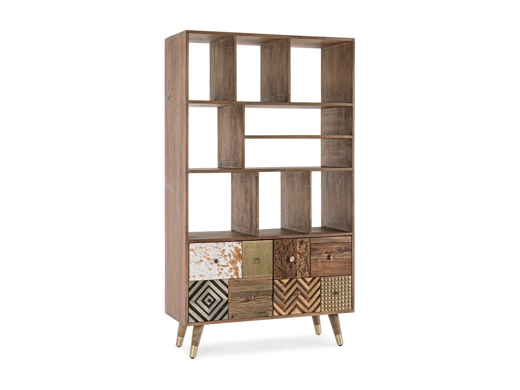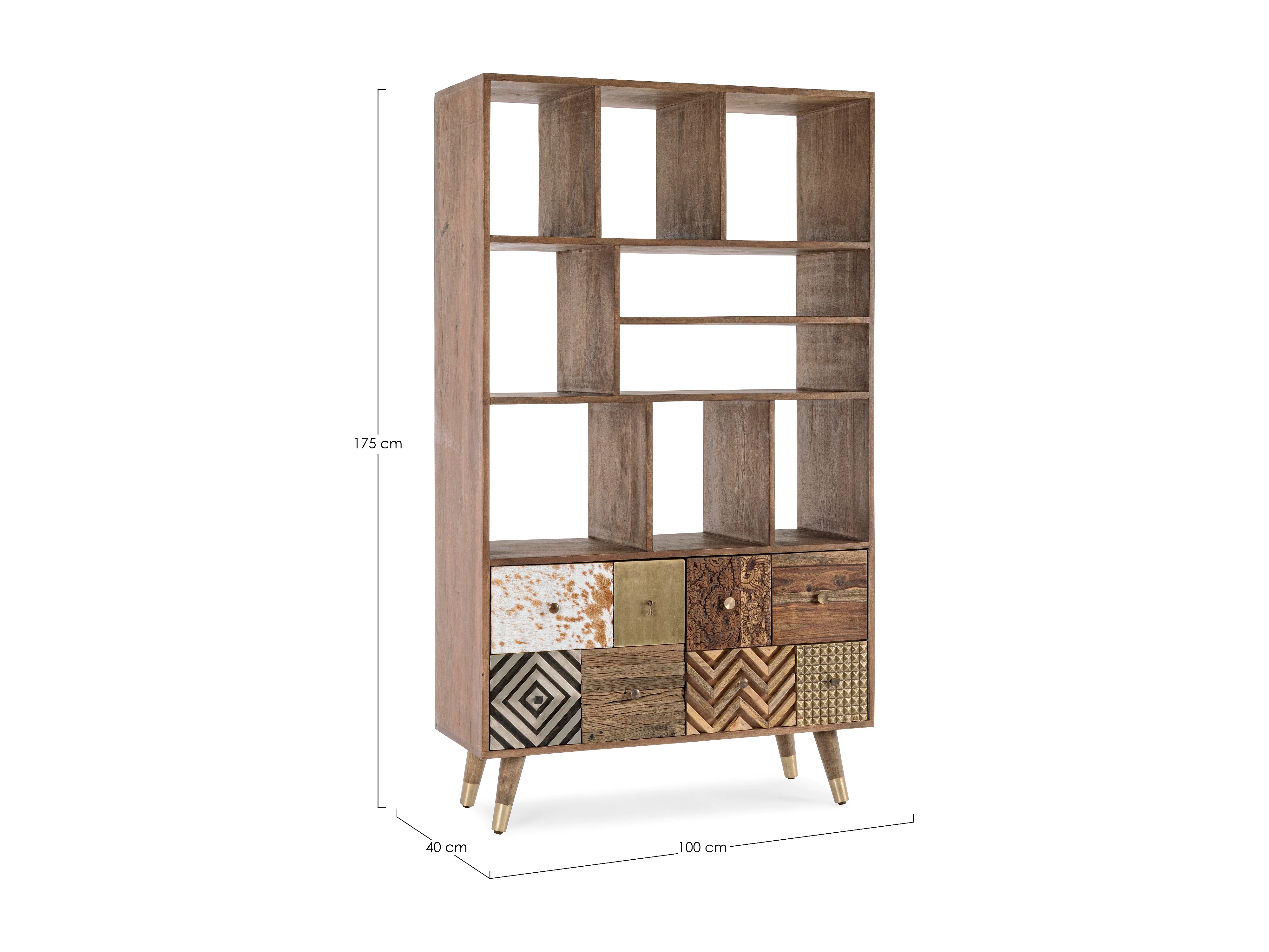 Bibliothèque avec étagères et 2 portes multi matières colorées Doki 100cm