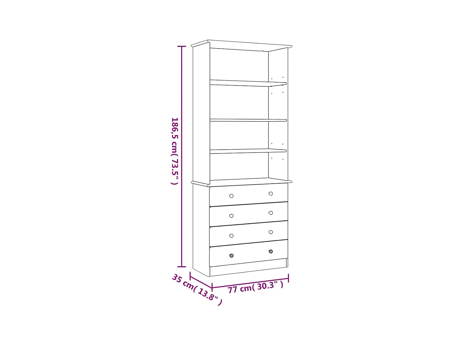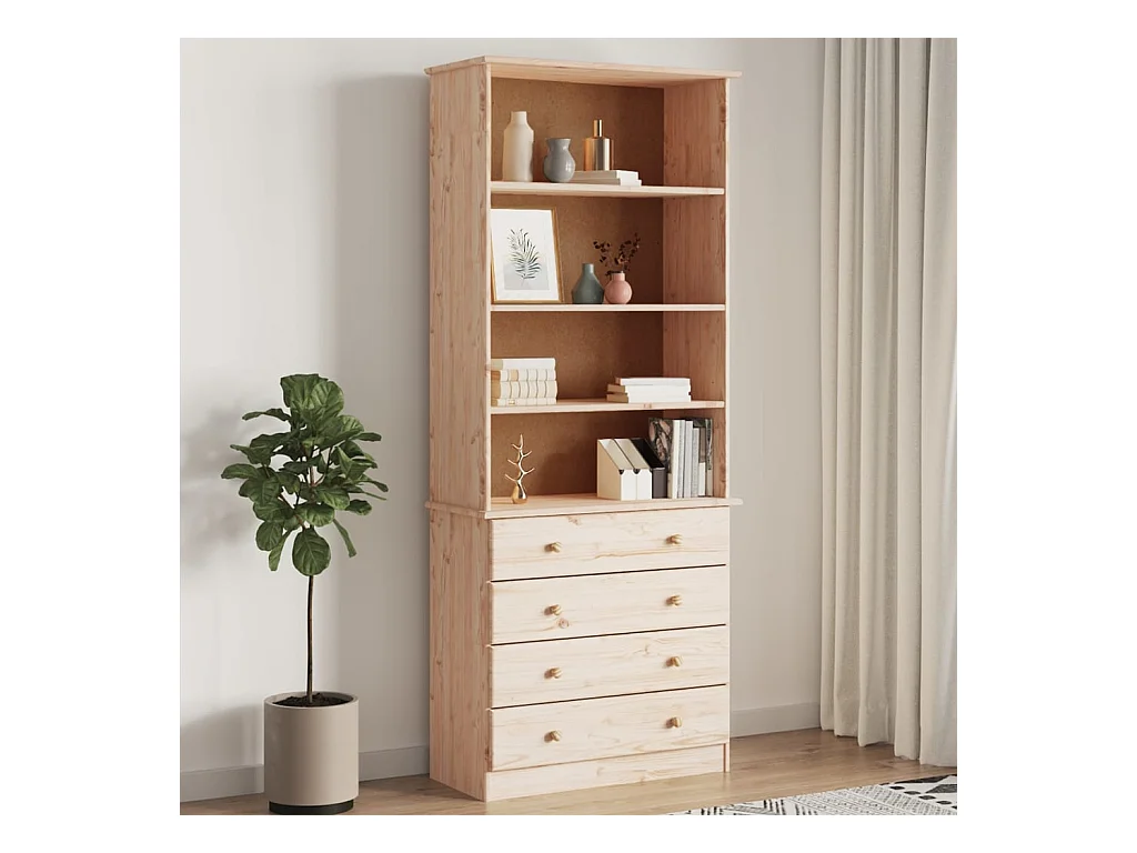 Bibliothèque avec tiroirs ALTA 77x35x186,5cm bois massif de pin