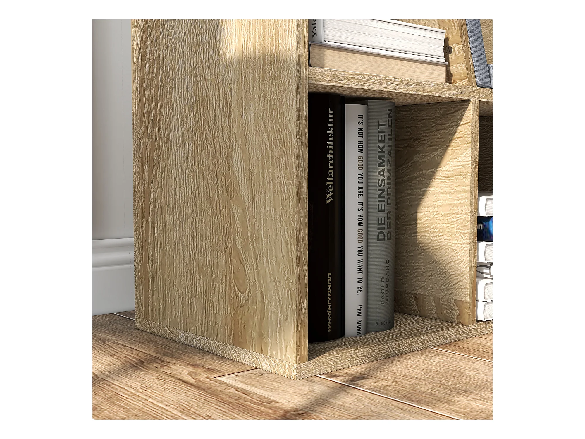 Bibliothèque Sacramento, Bibliothèque réversible à 8 compartiments, Meuble TV multi-positions, 72x33h137 cm, Chêne effet noeud et Blanc