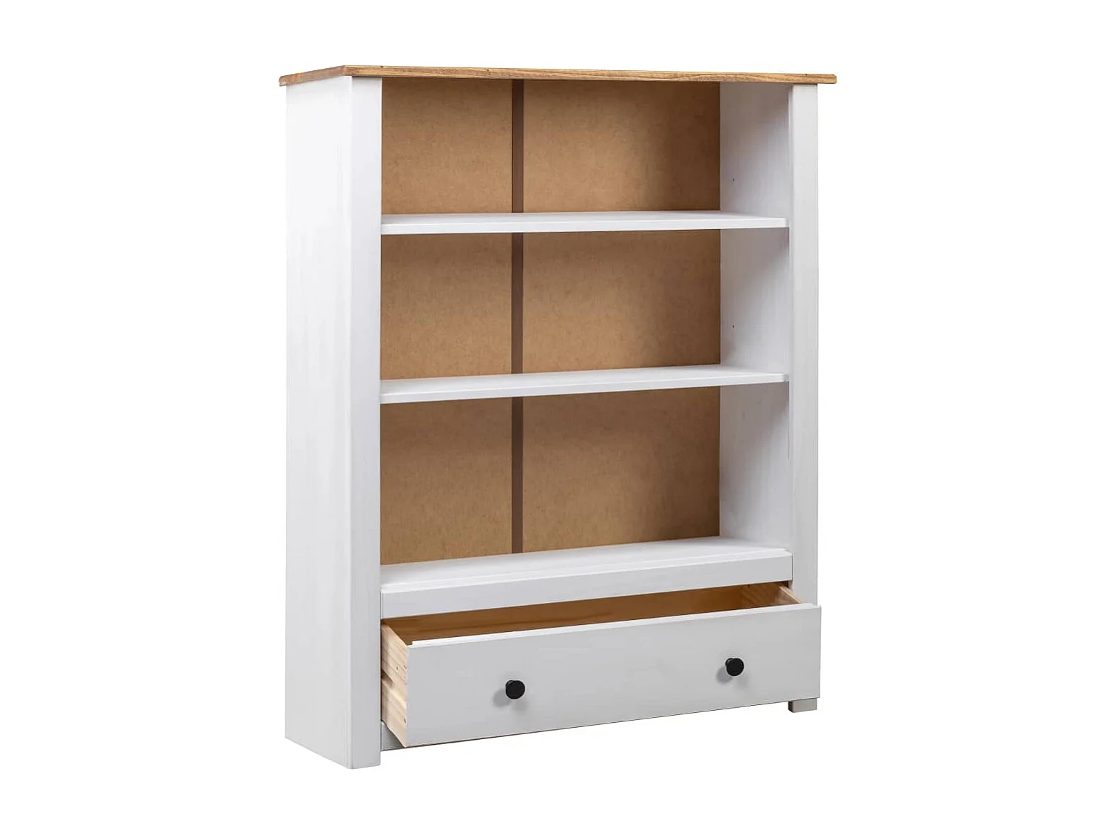 Bibliothèque Blanc 80x35x110 cm Pin massif Assortiment Panama OFR87695 BonneVie Meuble