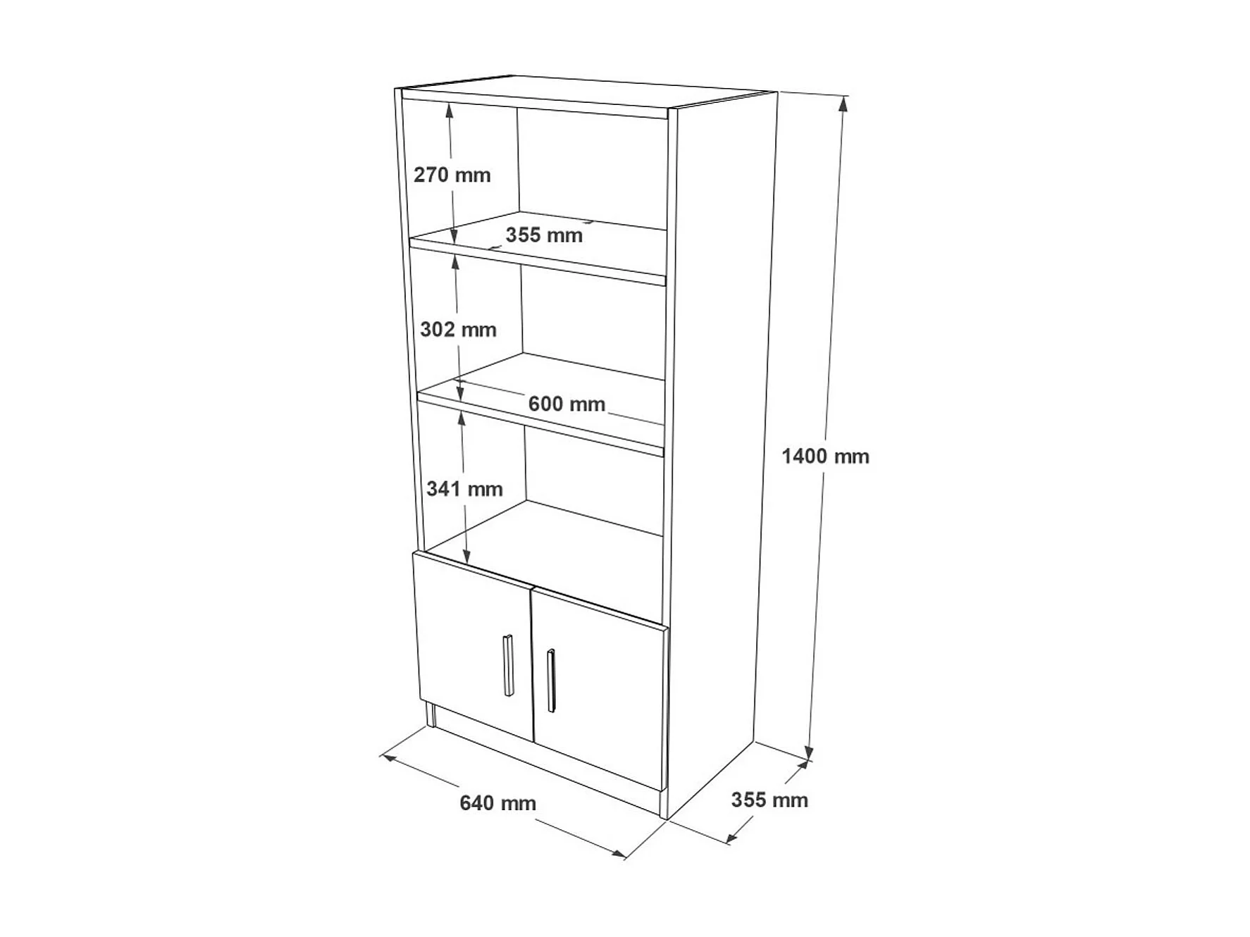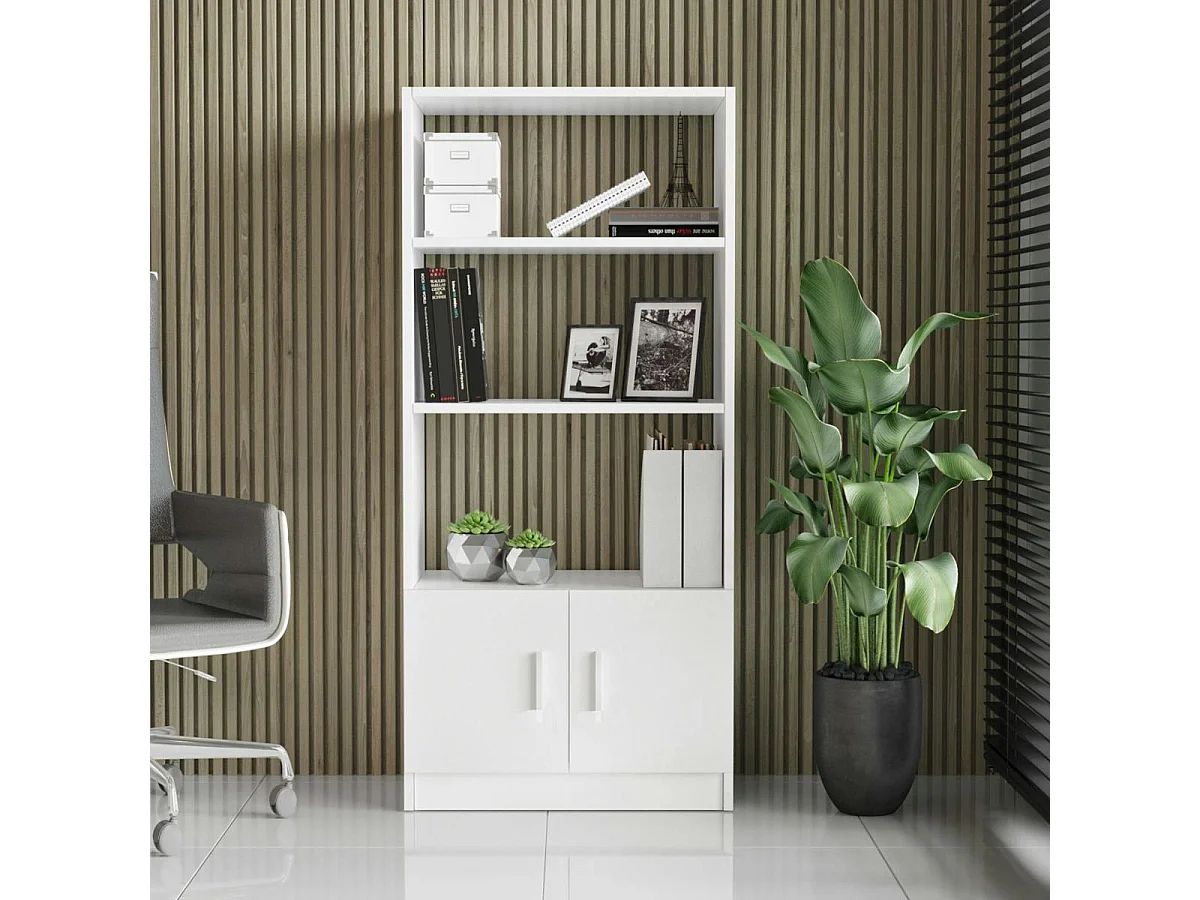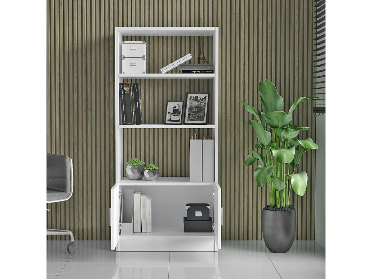 Bibliothèque blanche à rangement bas et poignées métal MARFA