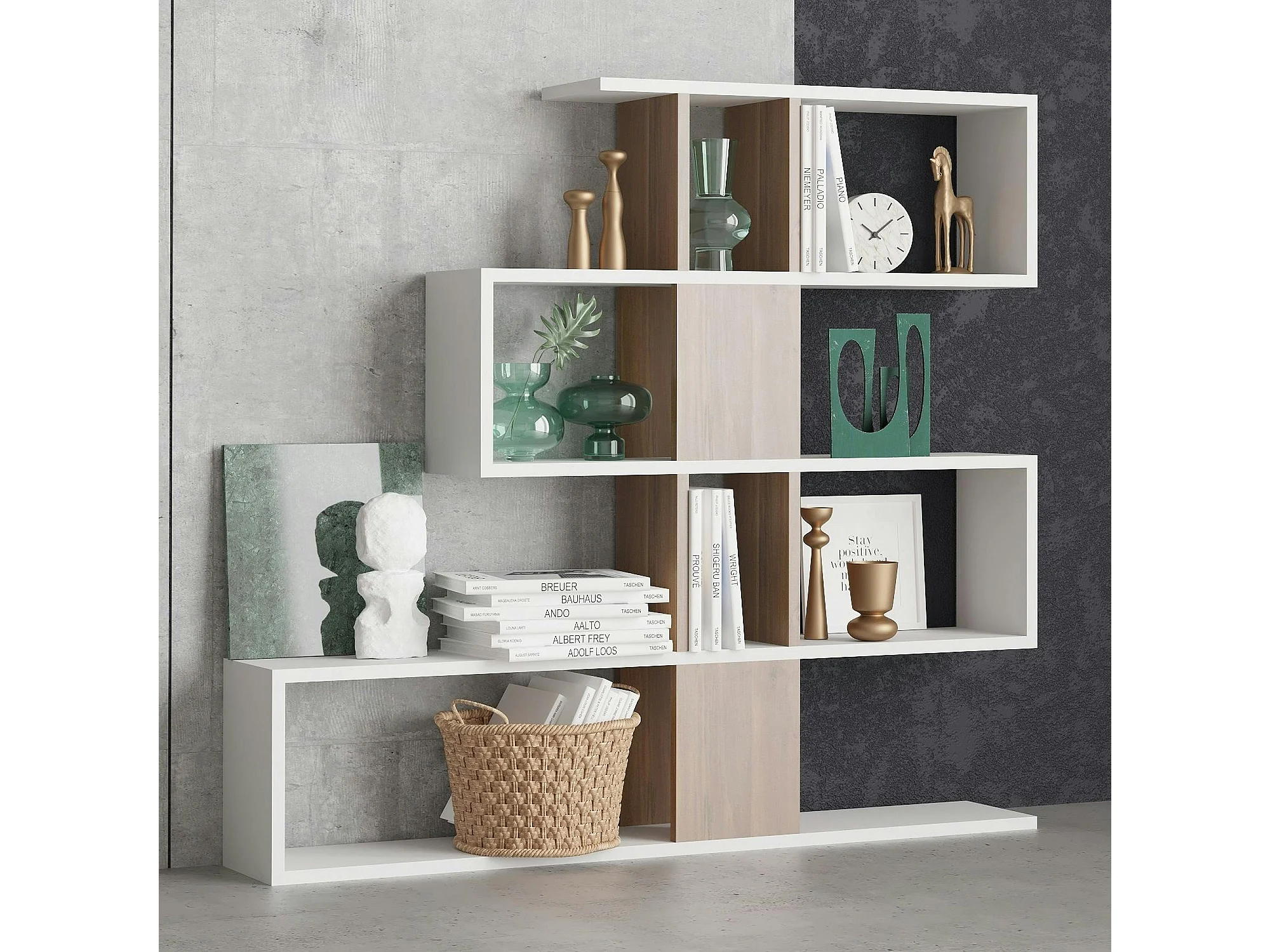 Bibliothèque blanche et effet noyer avec niches, 120 cm MARFA