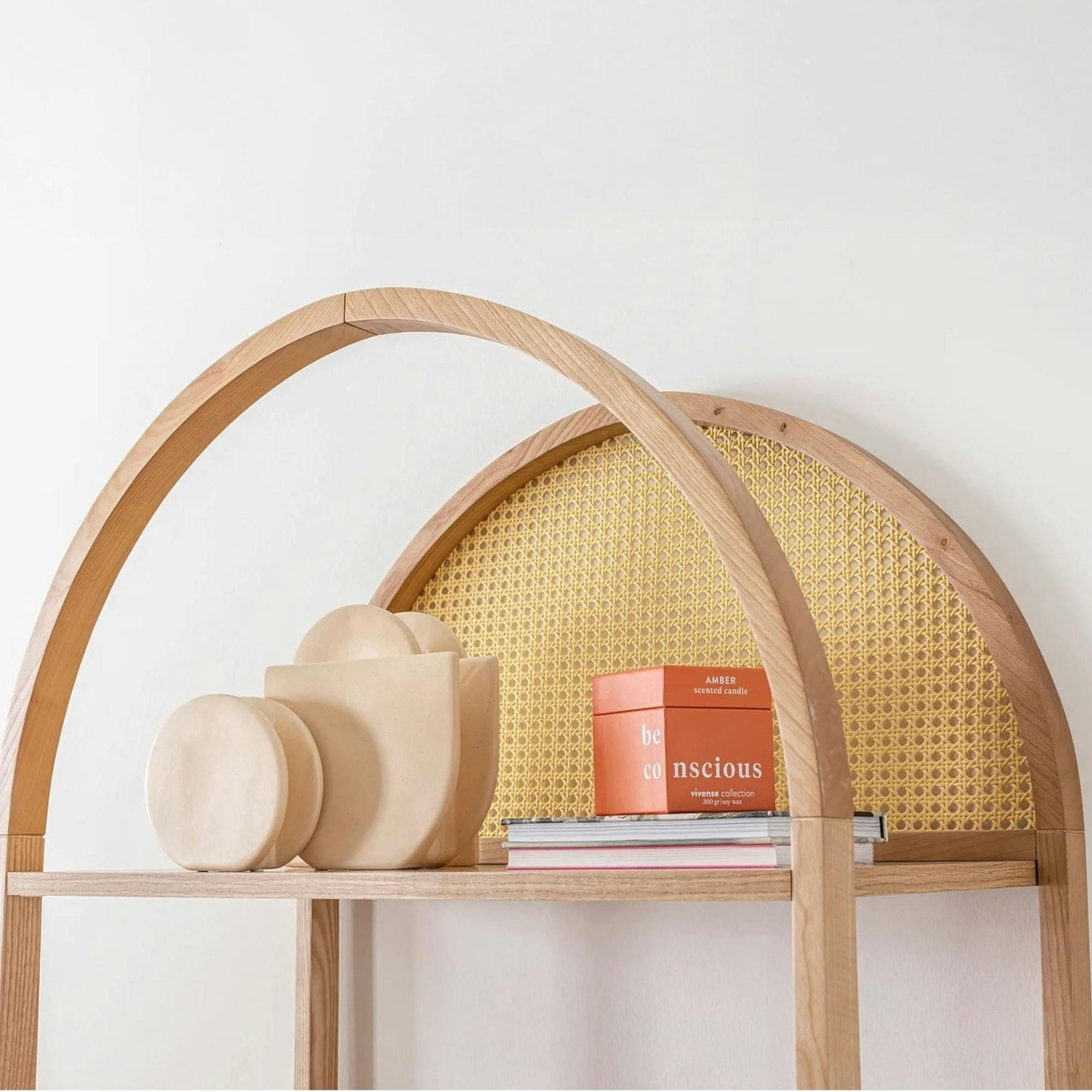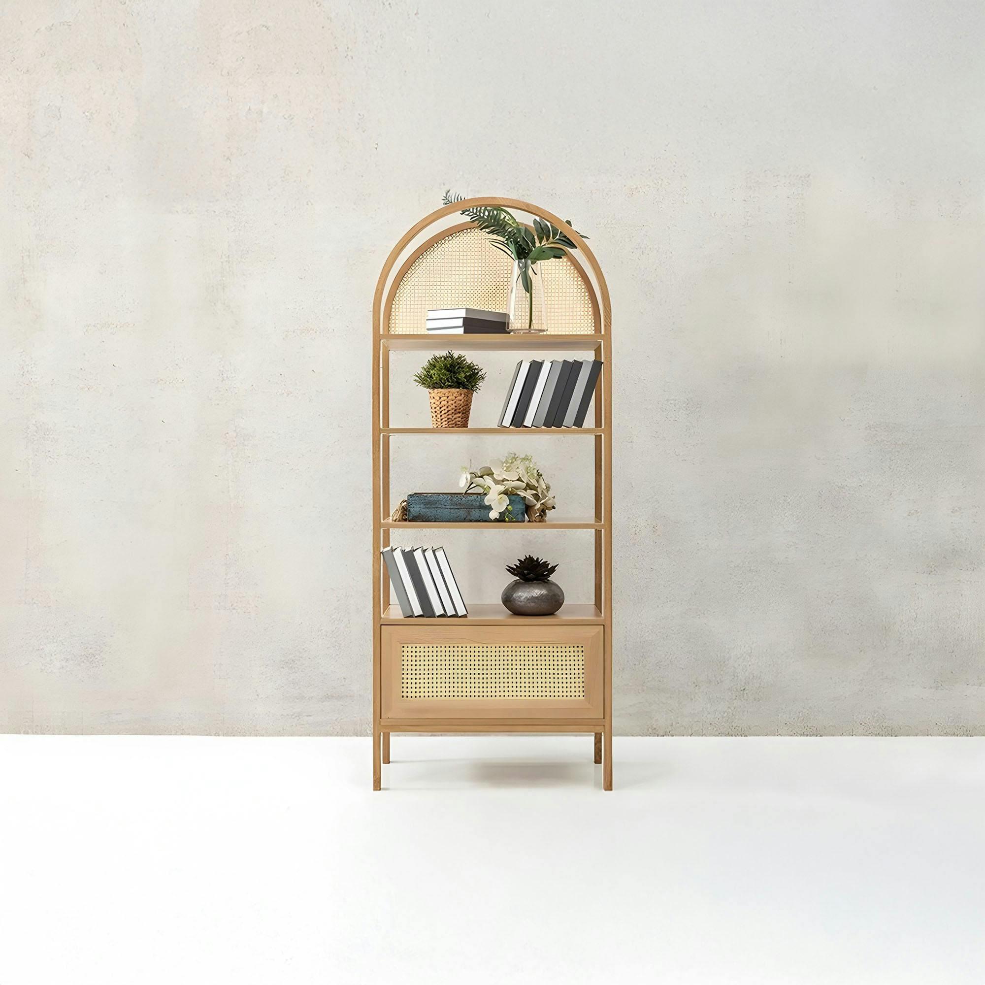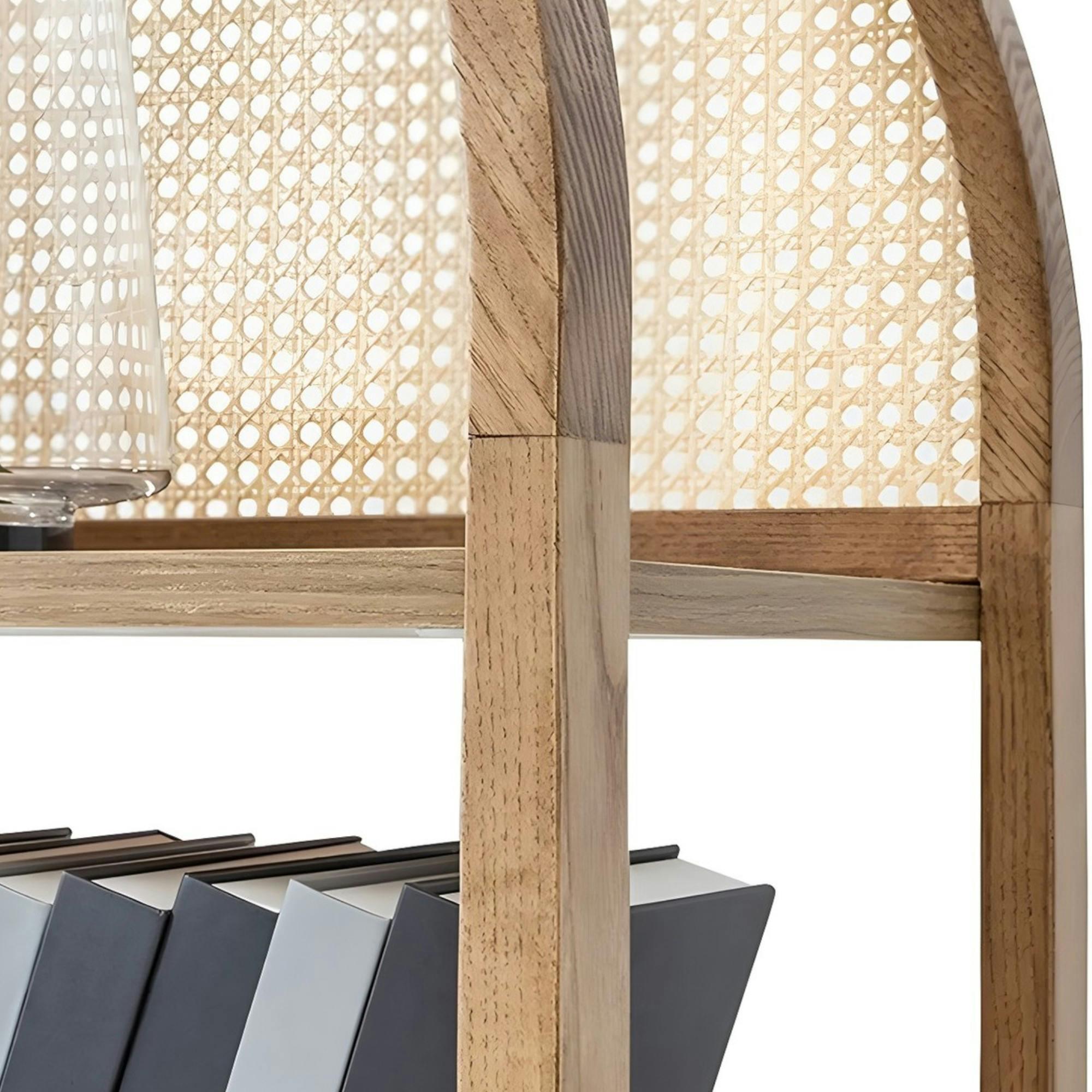 Bibliothèque cannage & effet bois ovale 4 étagères TANDI.