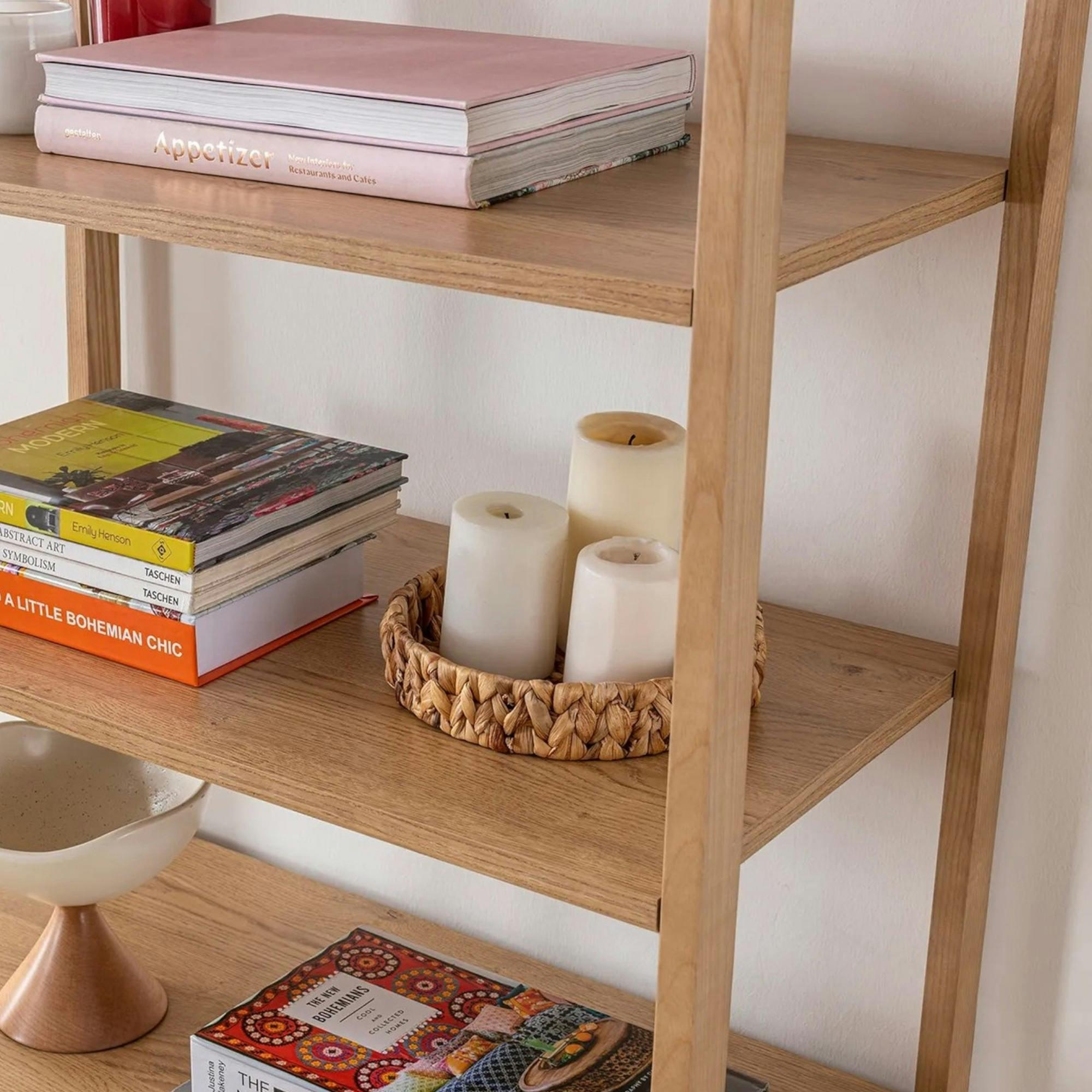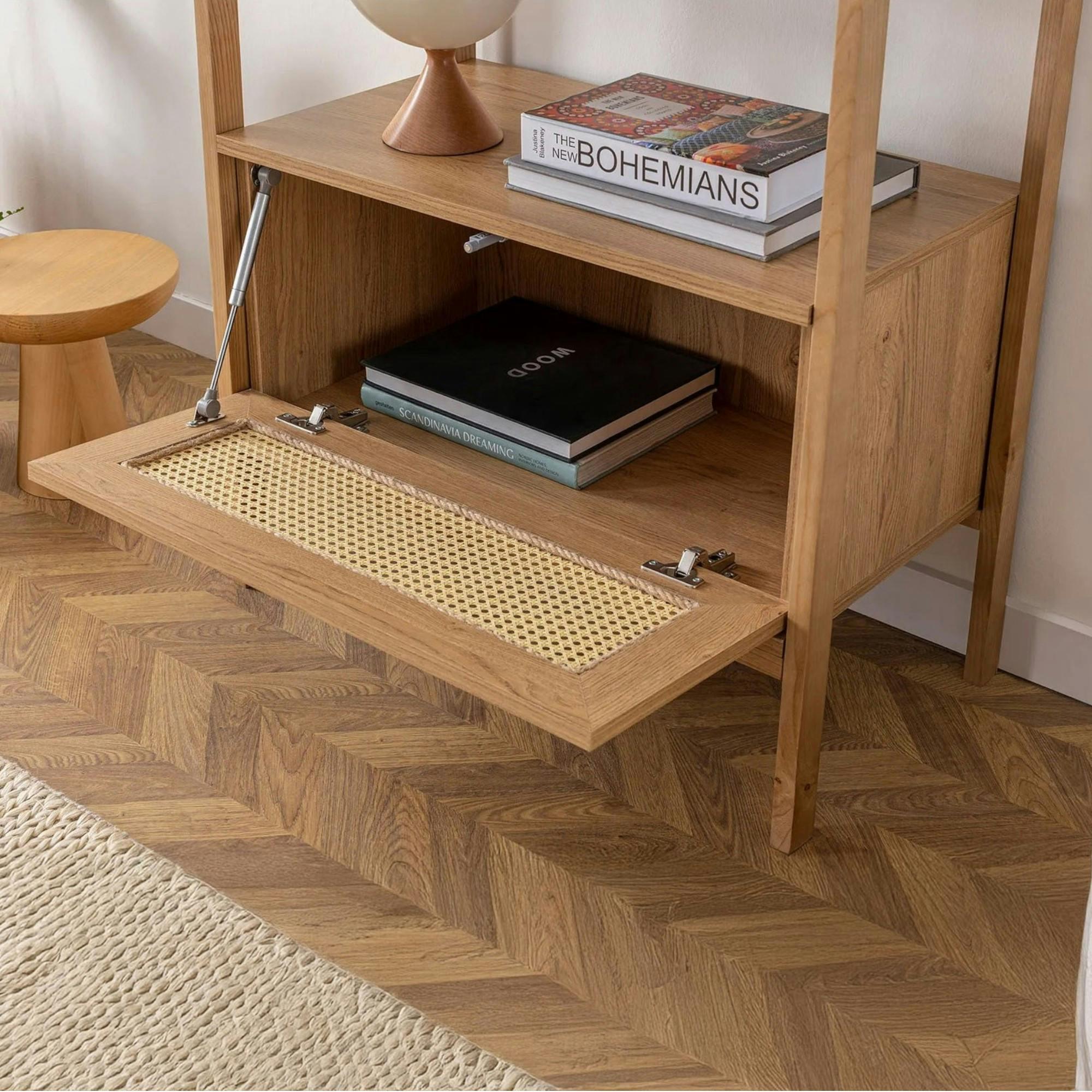 Bibliothèque cannage & effet bois ovale 4 étagères TANDI