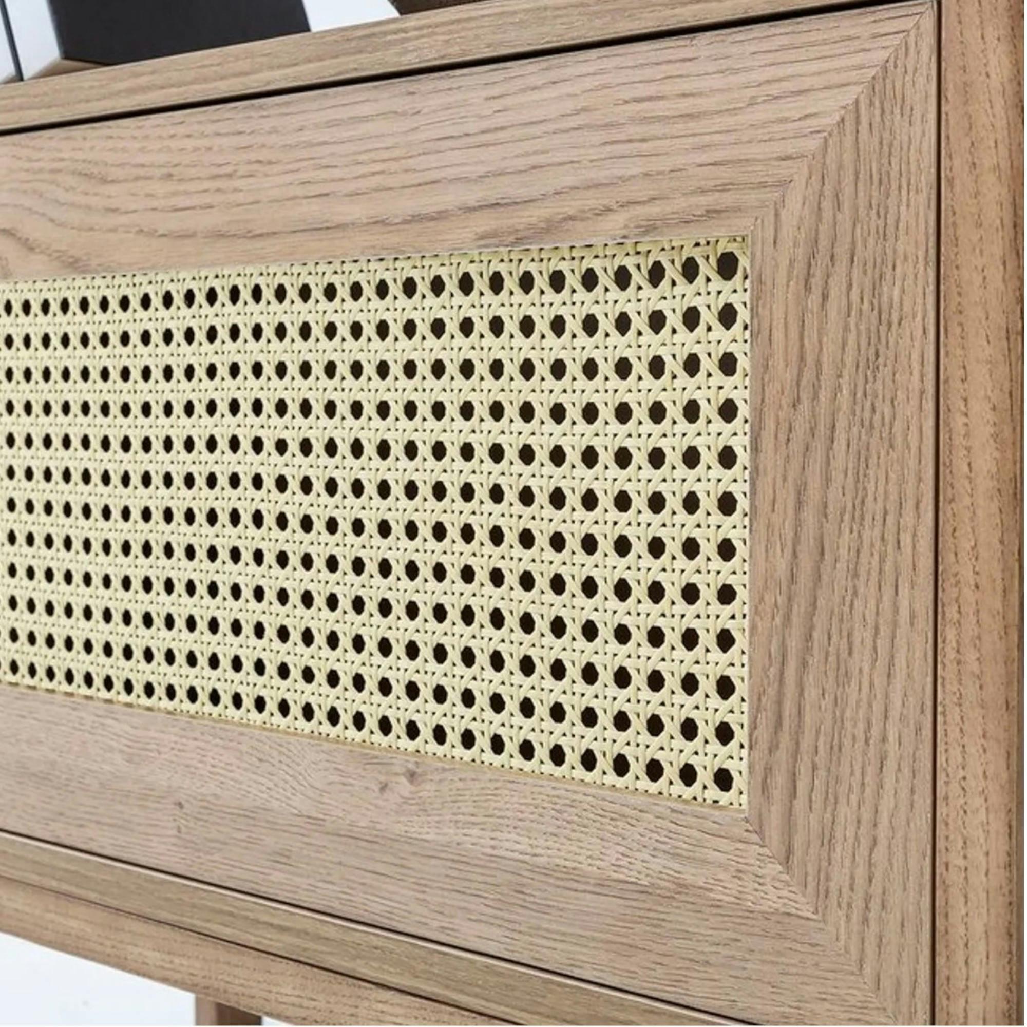 Composition : Bois Bois de hêtre massif et cannage (structure) - MDF recouvert de mélamine (étagères).