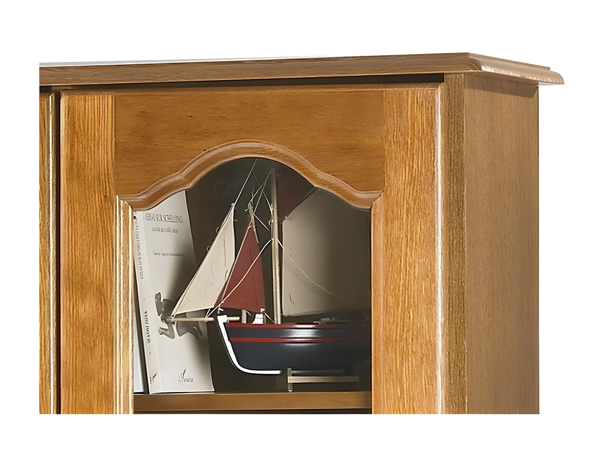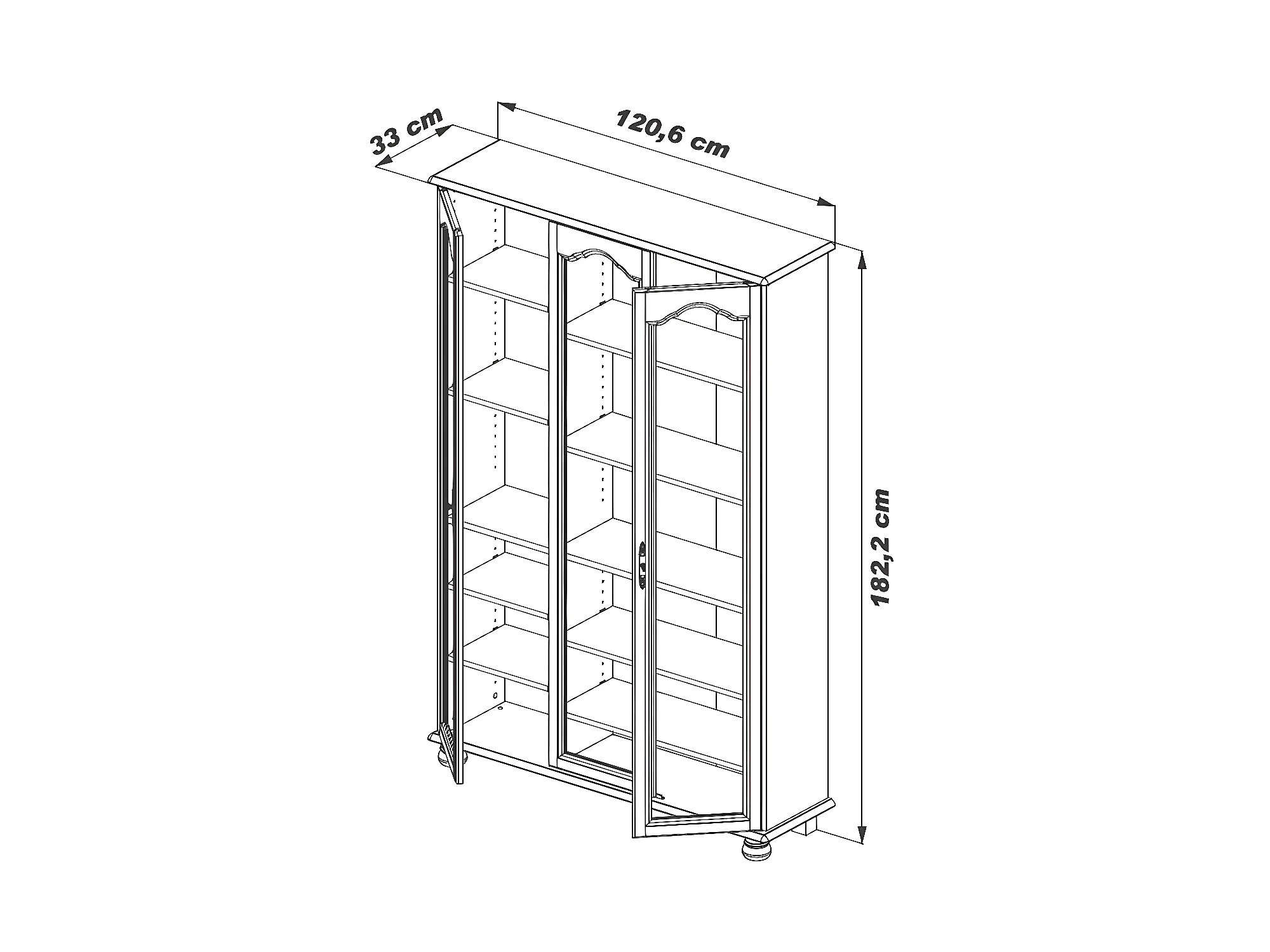 Bibliothèque Chêne 3 Portes Vitrées 12 Niches L 120.6 H 182.2 P 33 cm