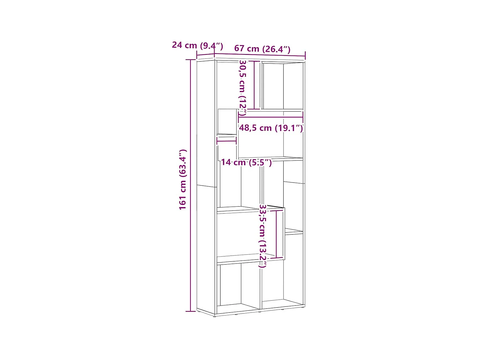 Bibliothèque Artisan Chêne 67x24x161 cm Bois d'ingénierie