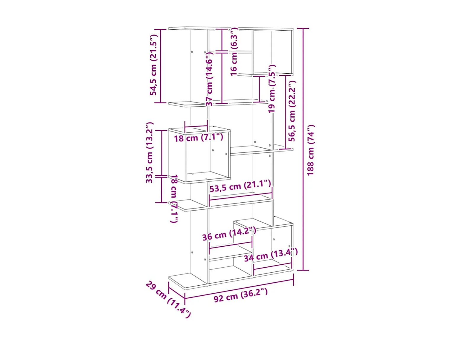 Bibliothèque chêne artisanal 92x29x188 cm bois d'ingénierie