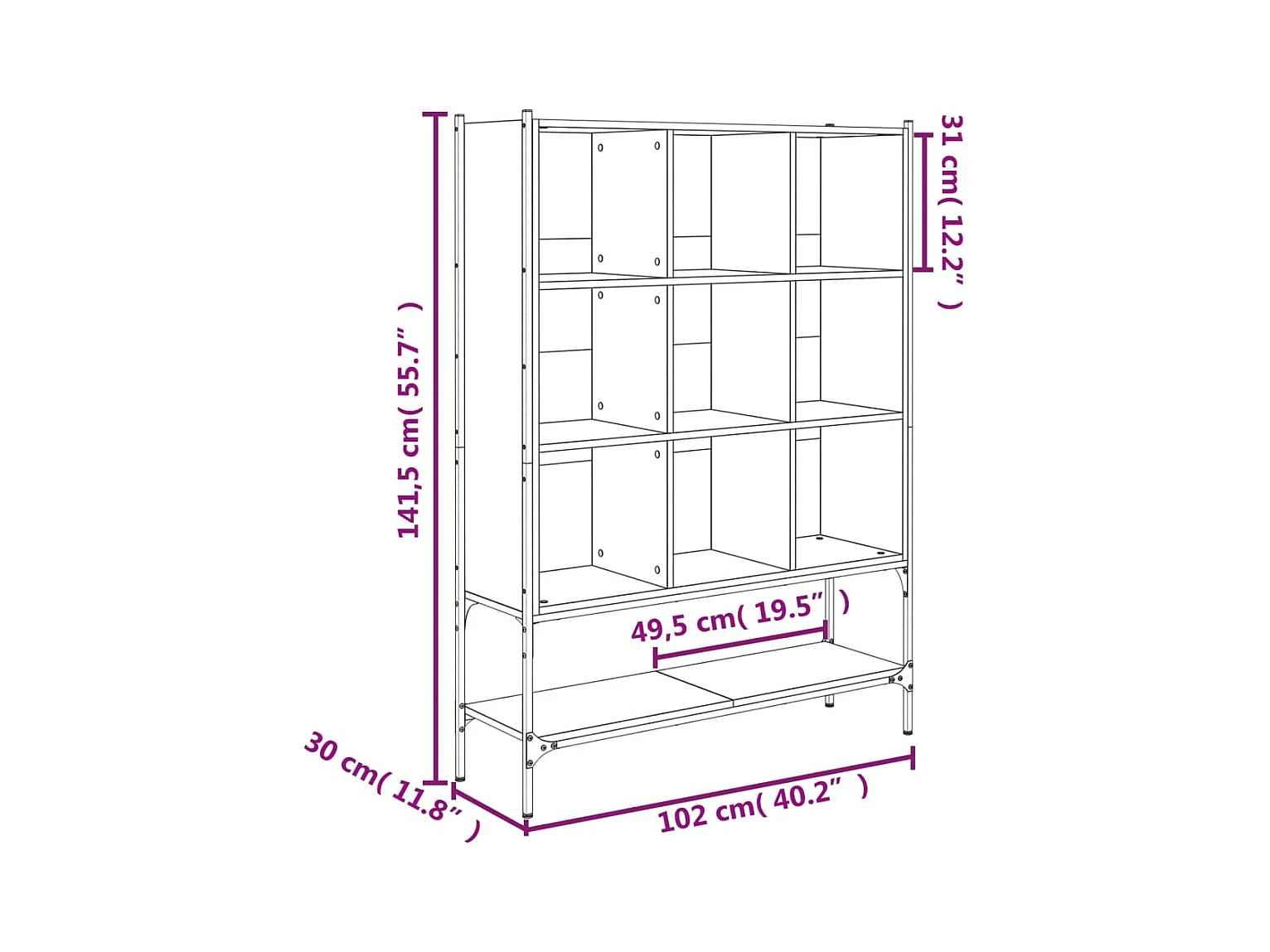 Bibliothèque à 3 niveaux chêne brun 41x30x109,5