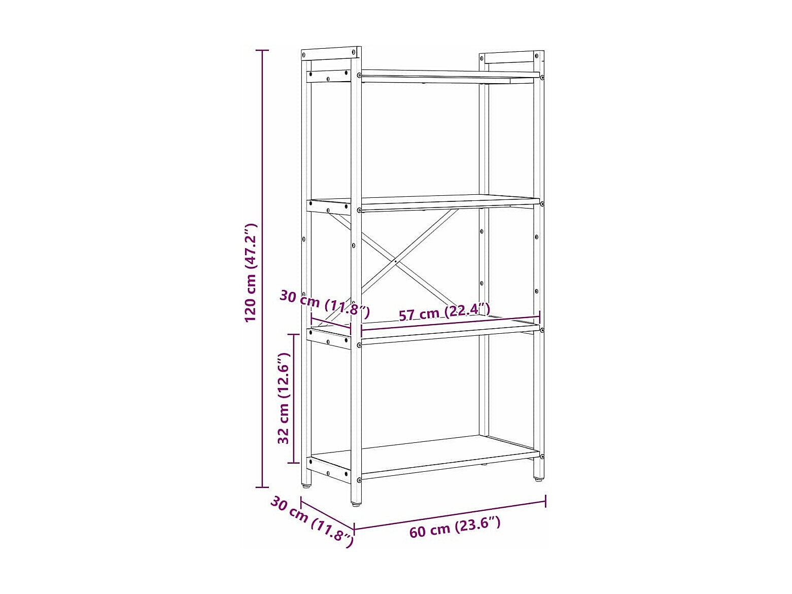 Bibliothèque à 3 niveaux vieux bois 60x30x60 cm bois ingénierie