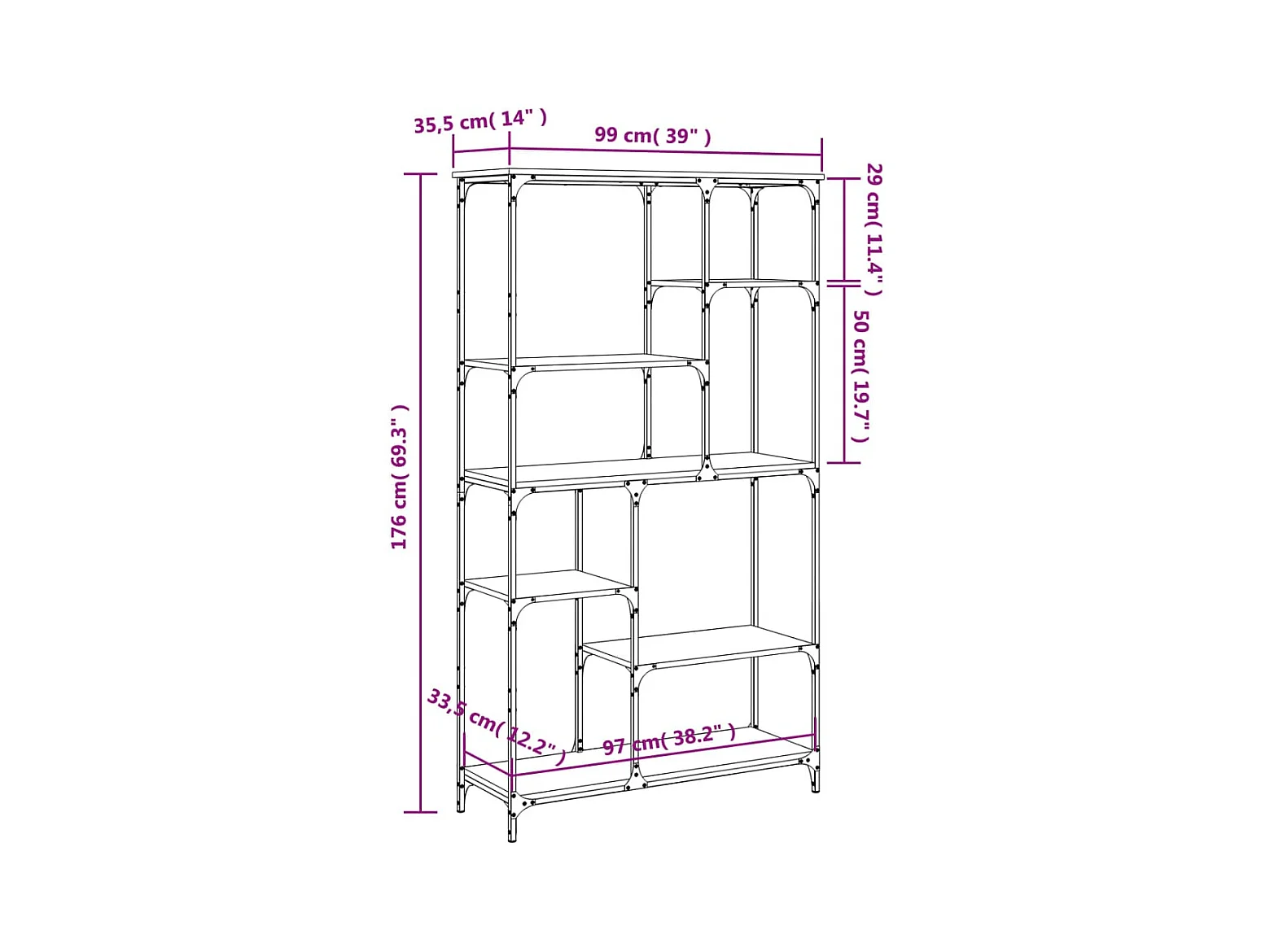 Bibliothèque chêne marron 99x35,5x176 cm bois ingénierie acier