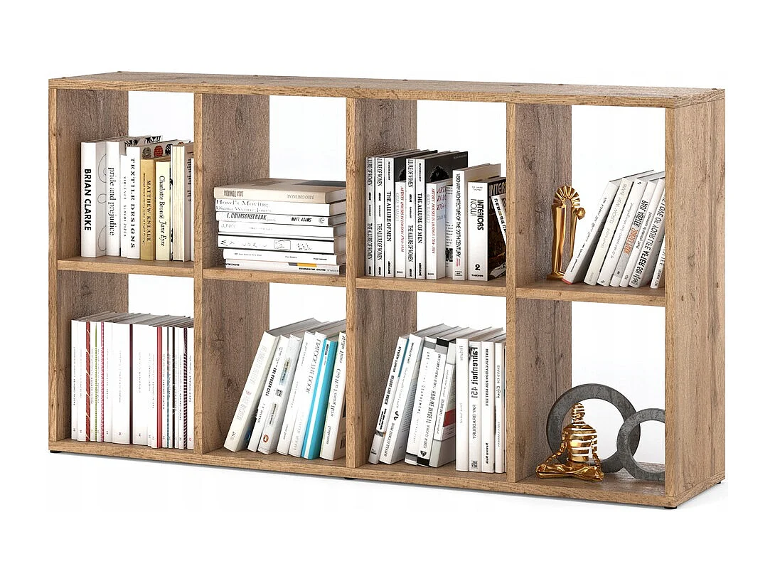 Bibliothèque Chêne Wotan – organisateur avec 8 grandes étagères en bois pour jouets 129x29x74cm