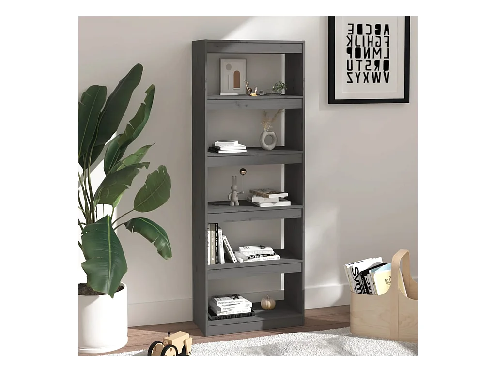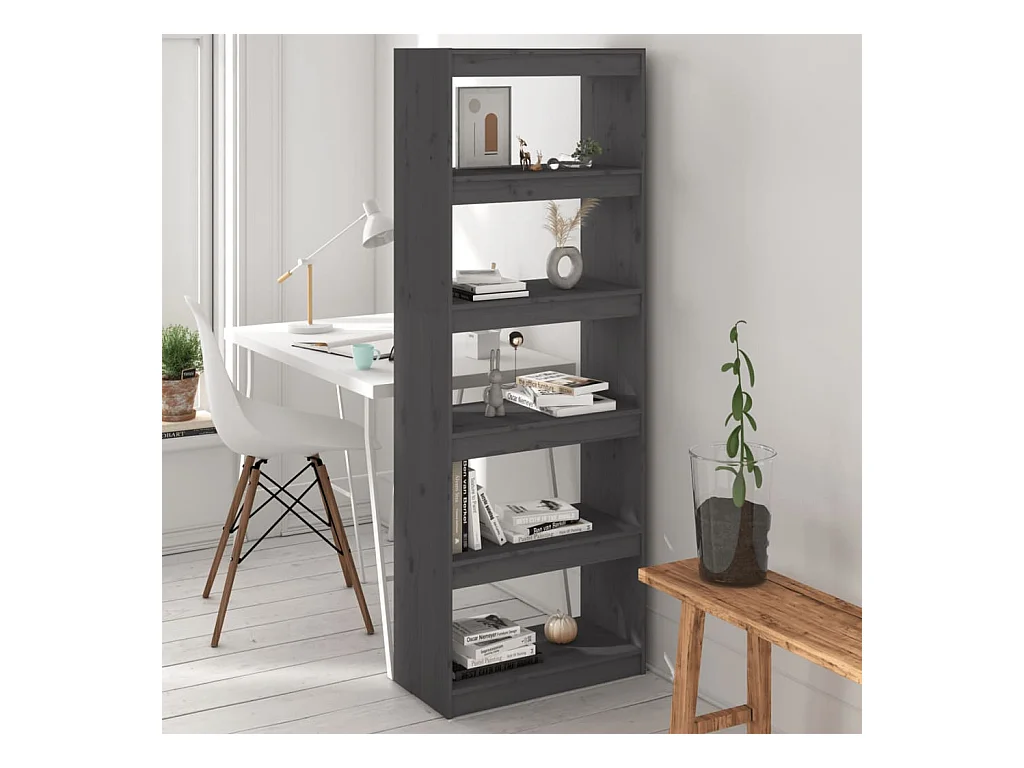 Bibliothèque-Cloison Gris 60x30x167,5 Bois massif de pin