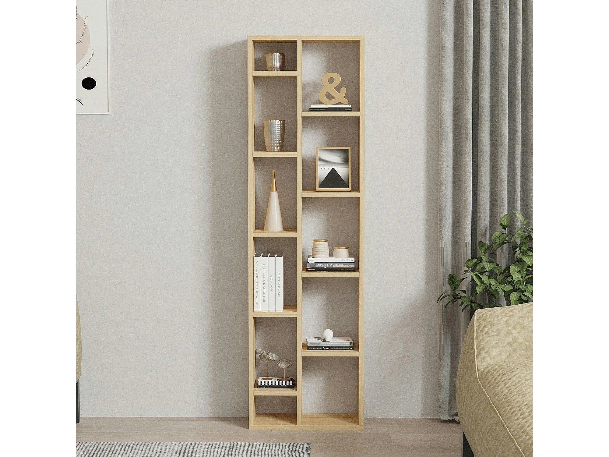 Bibliothèque colonne effet bois de chêne clair MARFA
