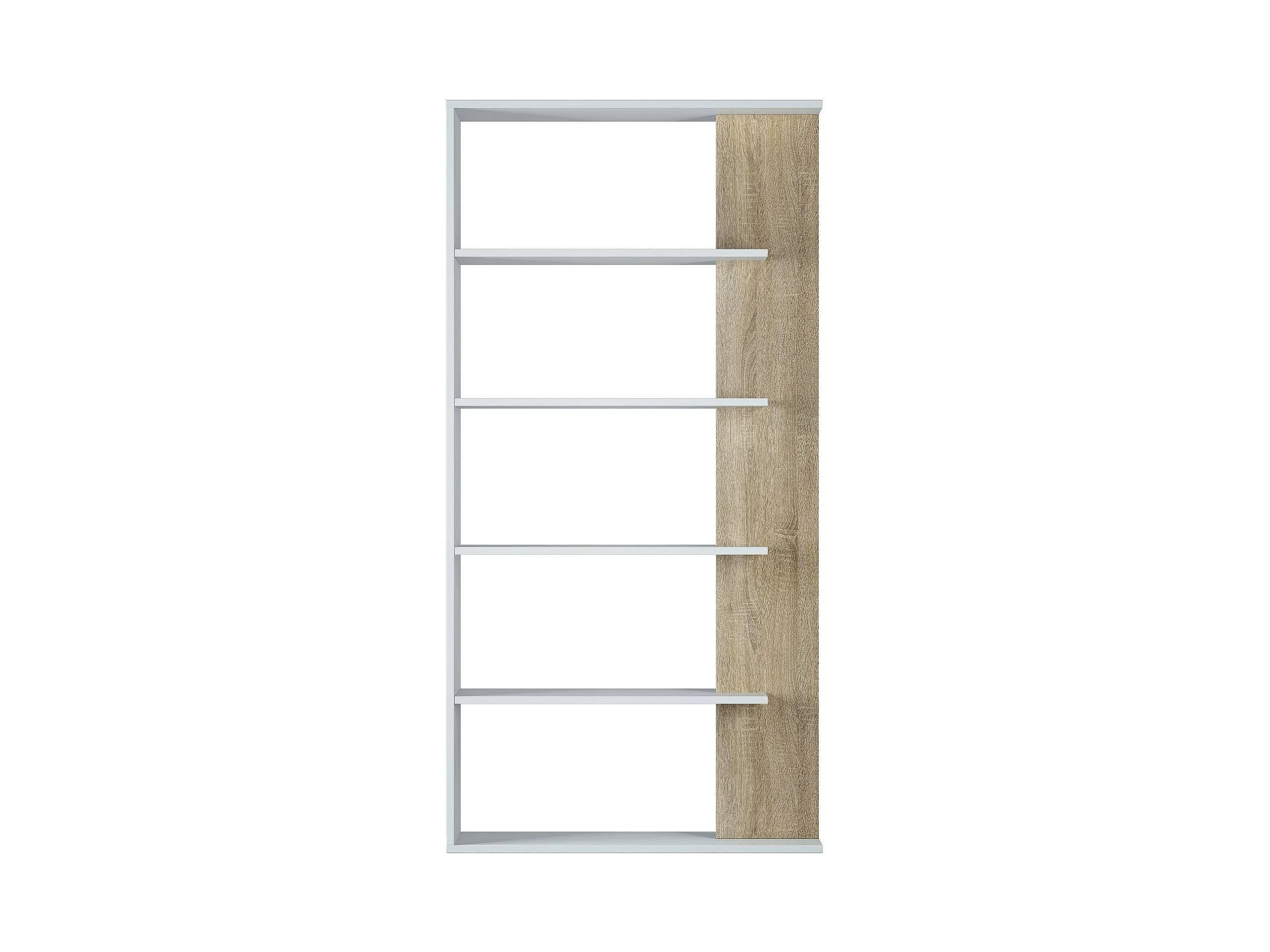 Bibliothèque Columbia, Bibliothèque double face avec 5 étagères, Etagère de séparation pour bureau ou chambre, 90x25h180 cm, Blanc et Chêne