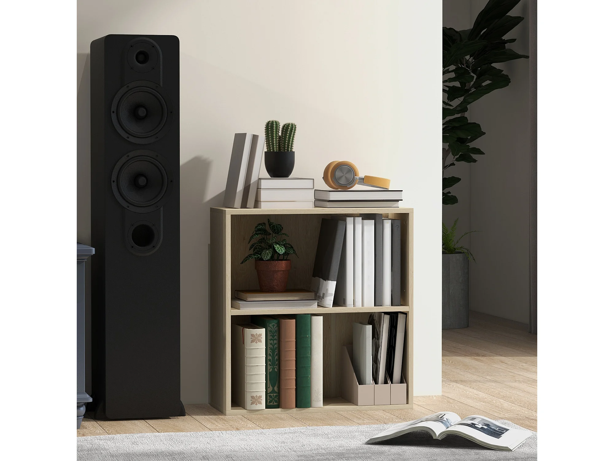Bibliothèque cube - cube de rangement 2 compartiments - dim. 60 x 24 x 63 cm - effet bois clair