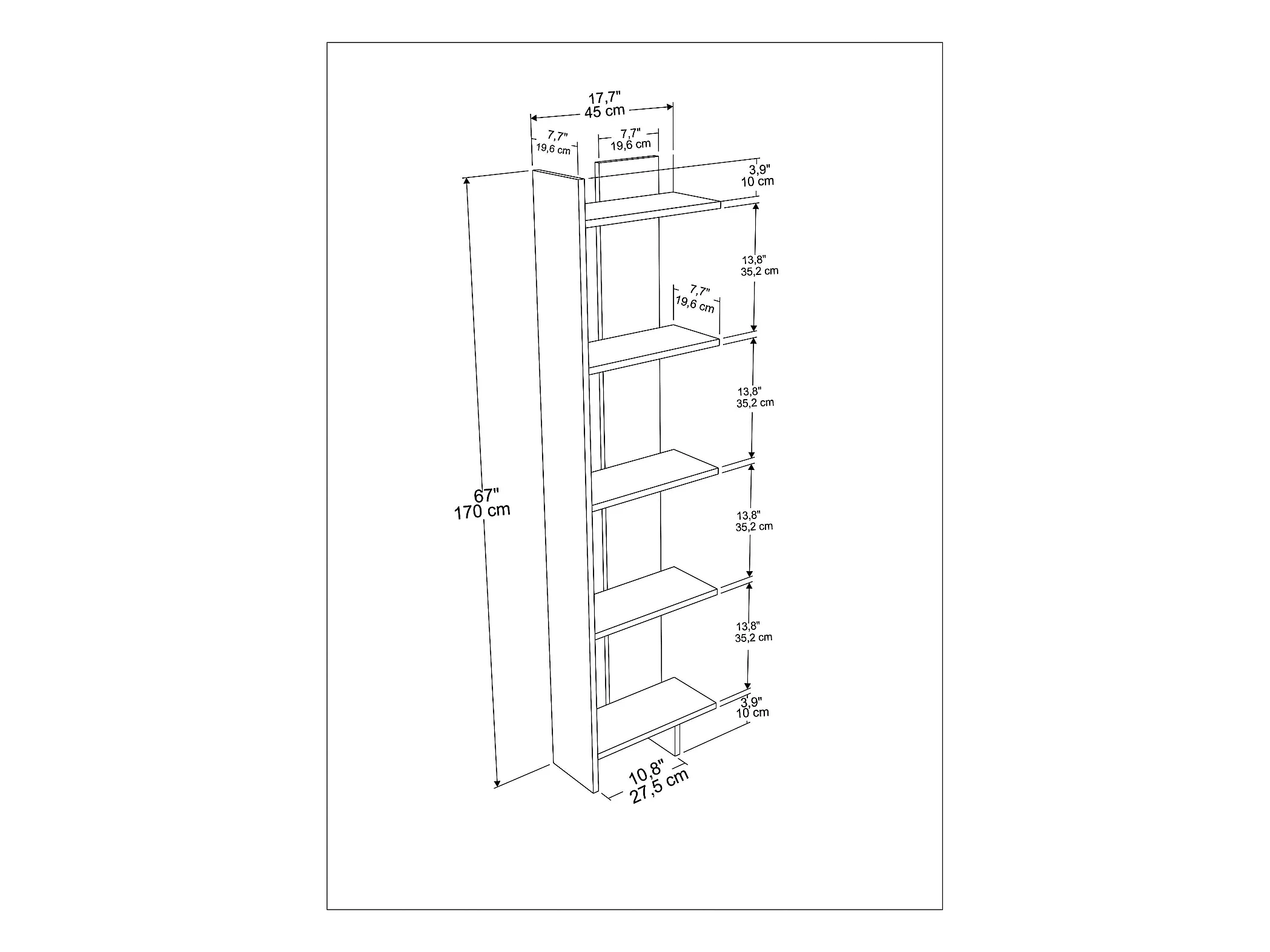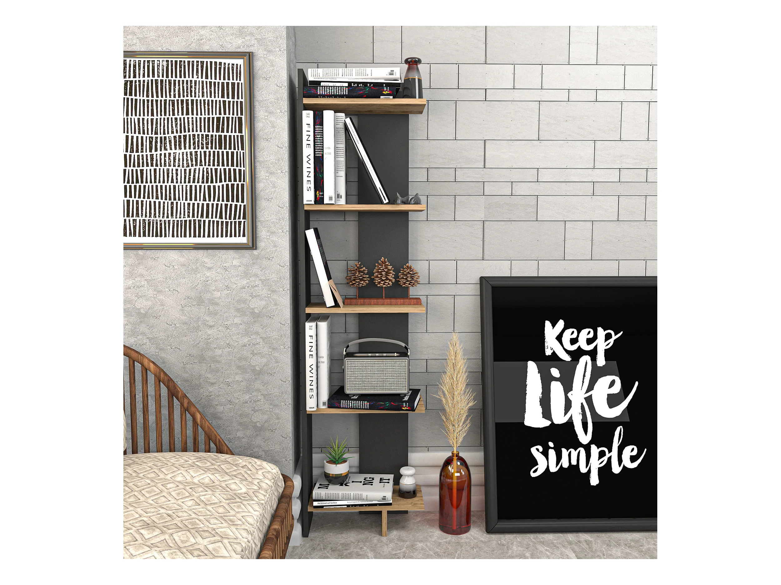 Bibliothèque d'angle 5-étagères Alice (Noir et Oud)