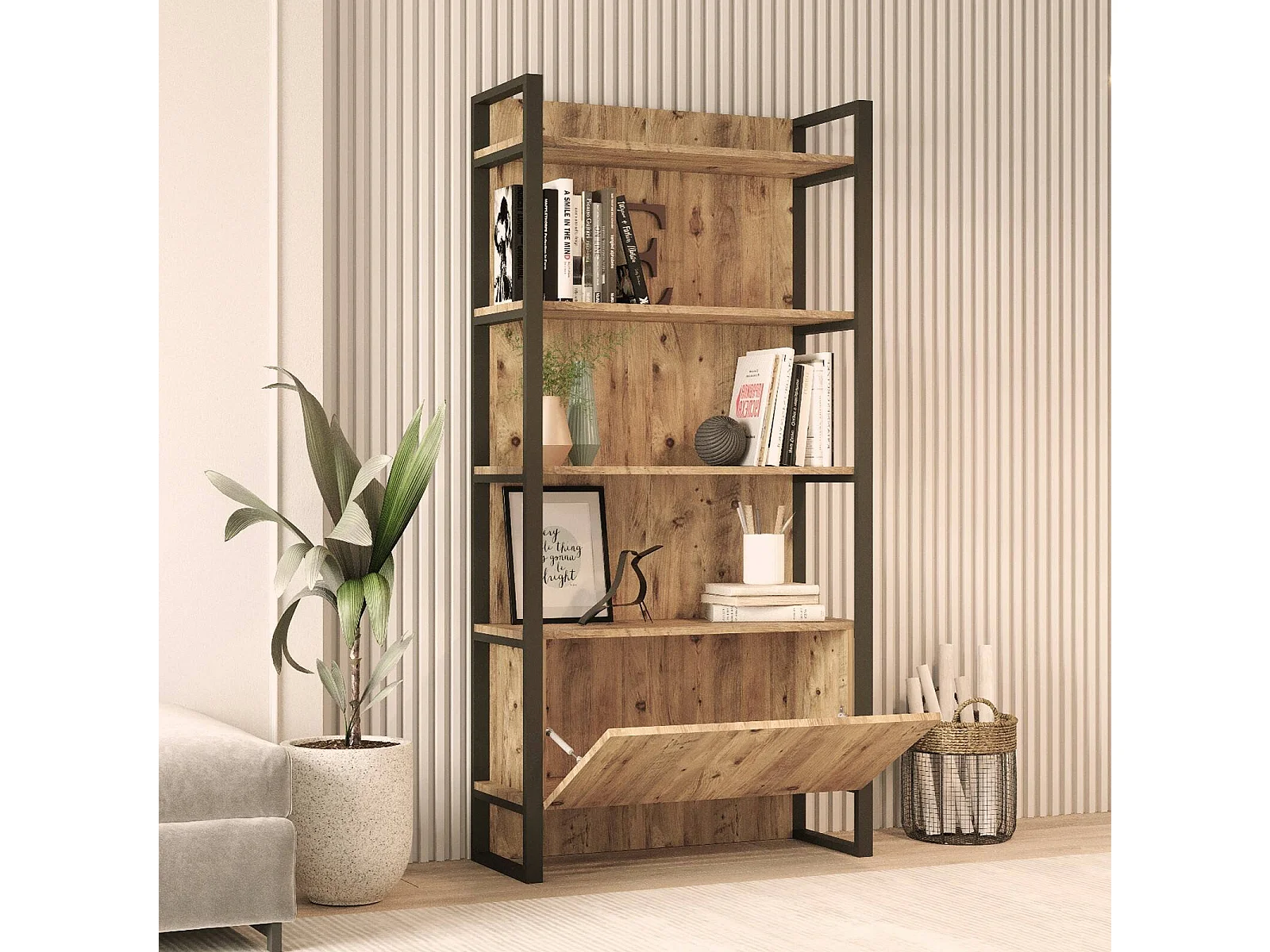 Bibliothèque Dabardonad, Etagère de bureau, Porte-livre mobile, Librairie, 90x34 h180 cm, Chêne