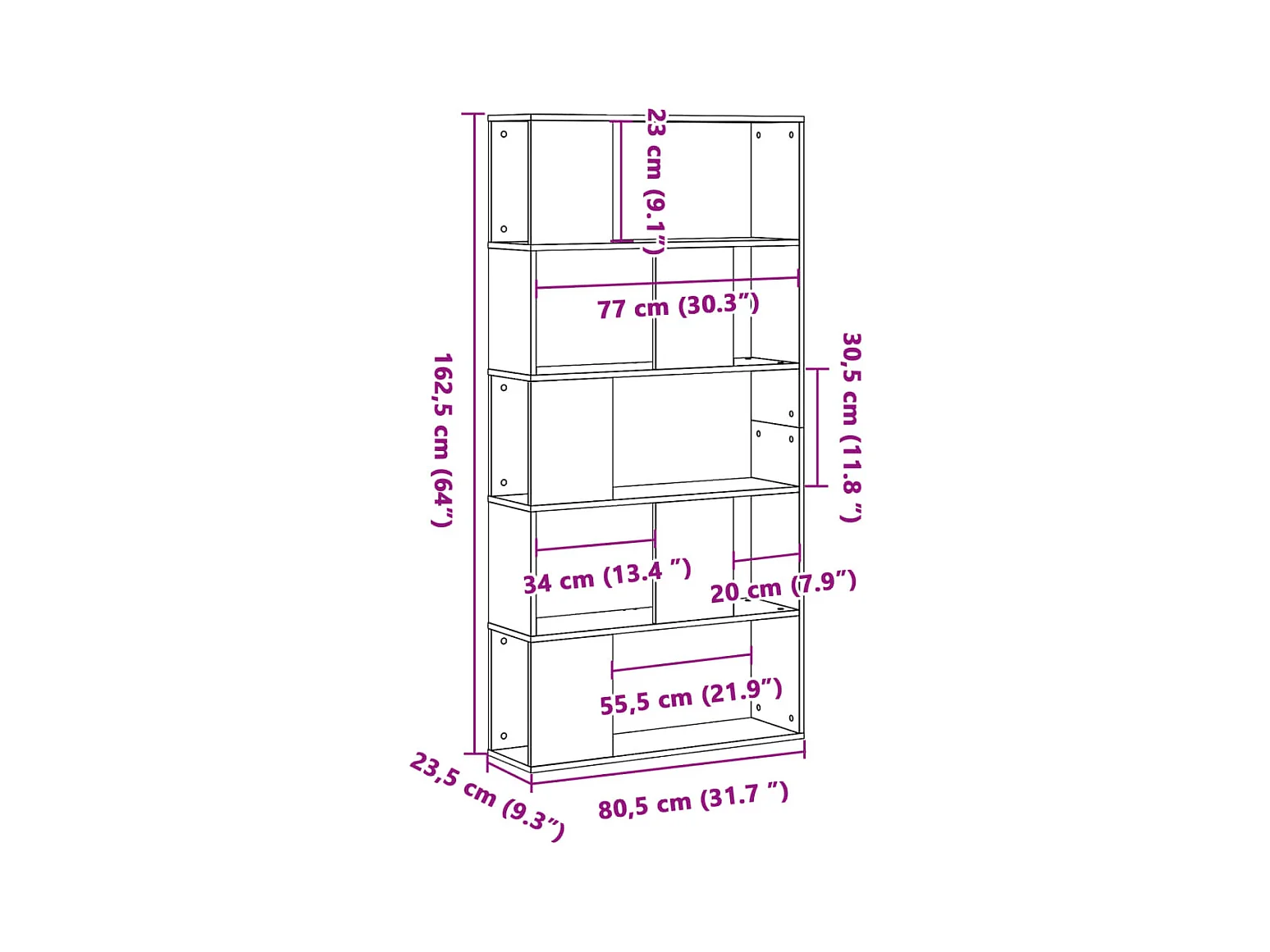 Bibliothèque d'angle à 4 niveaux chêne sonoma bois d'ingénierie