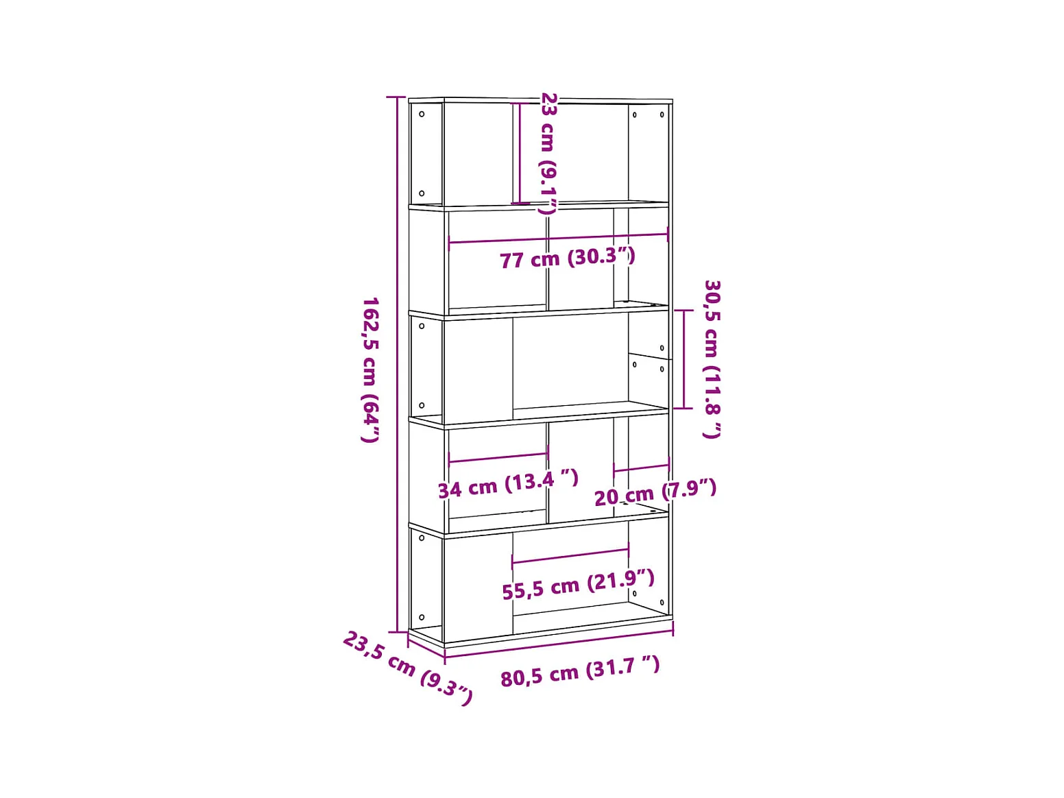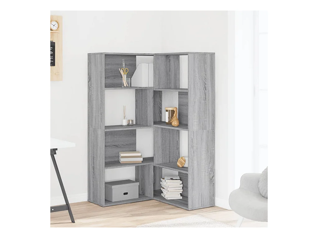 Bibliothèque d'angle à 4 niveaux sonoma gris bois d'ingénierie