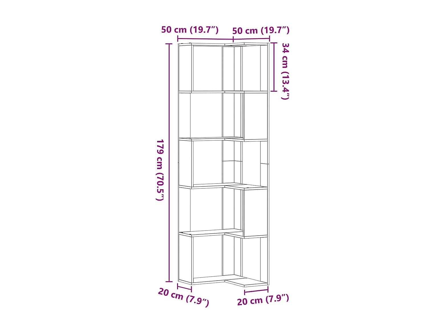 Bibliothèque d'angle à 5 niveaux blanc bois d'ingénierie