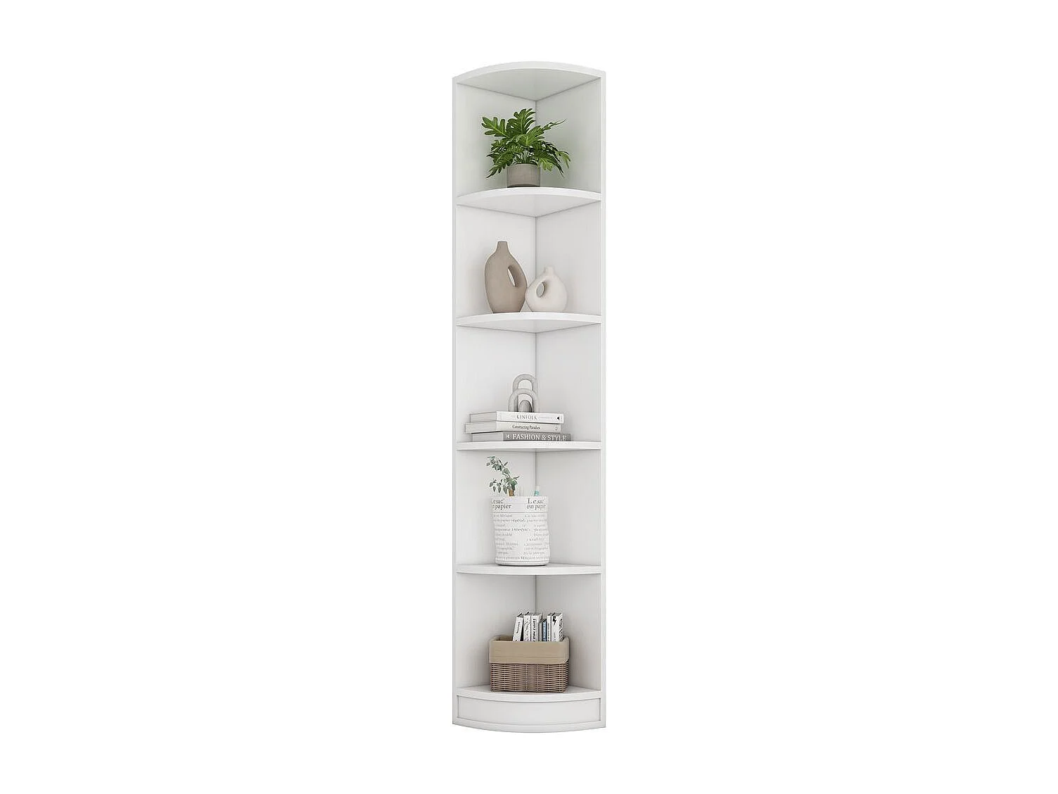 Bibliothèque d'angle étagère étagère de rangement matériau MDF étagère à cinq niveaux forme simple forte capacité de charge blanc