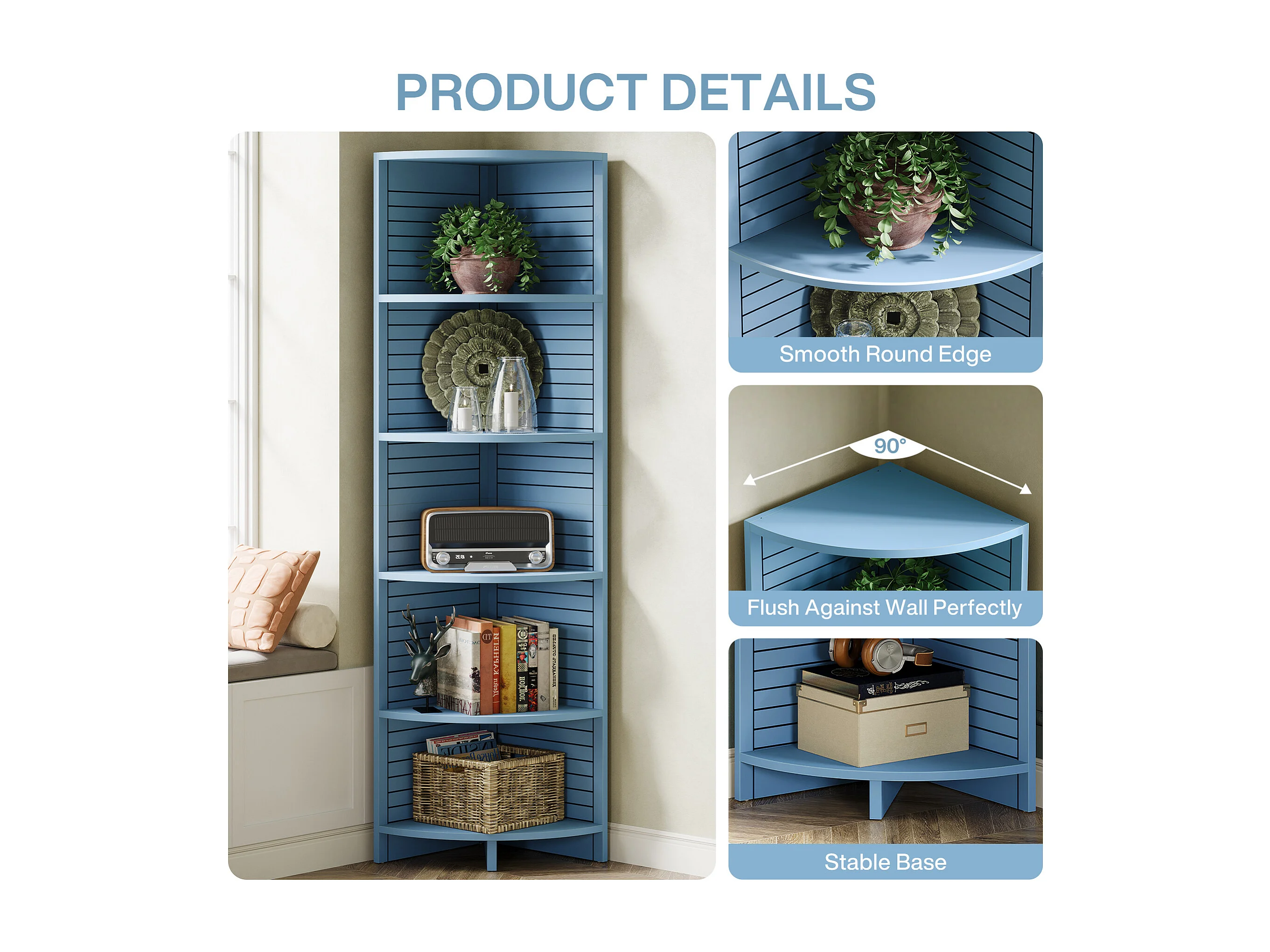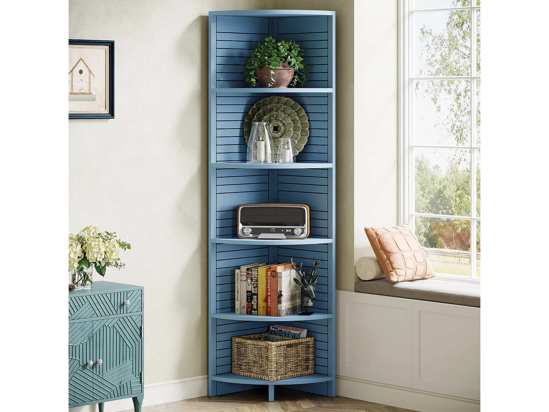 bibliothèque d'angle étroite, Étagère d'angle à 5 niveaux, 180 cm de haut, étagère d'angle autonome pour salon, chambre à coucher, salle de bain