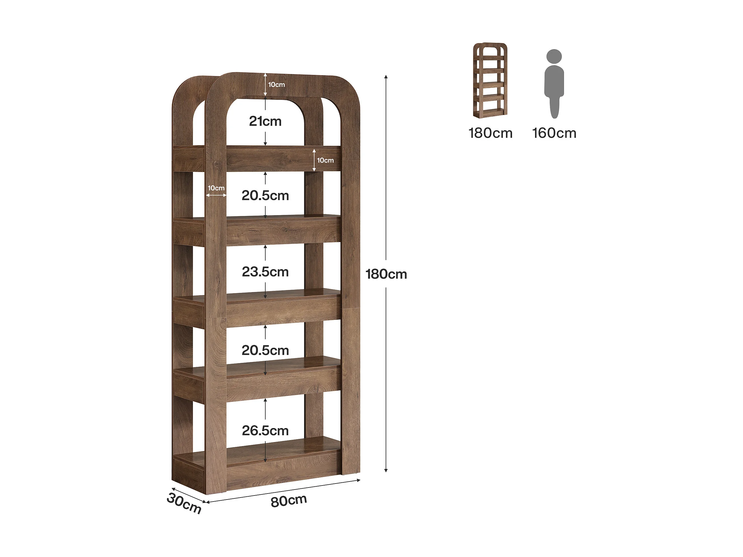 Bibliothèque de 180 cm de haut, bibliothèque à 5 niveaux avec étagères ouvertes, meuble de rangement de style industriel pour bureau à domicile