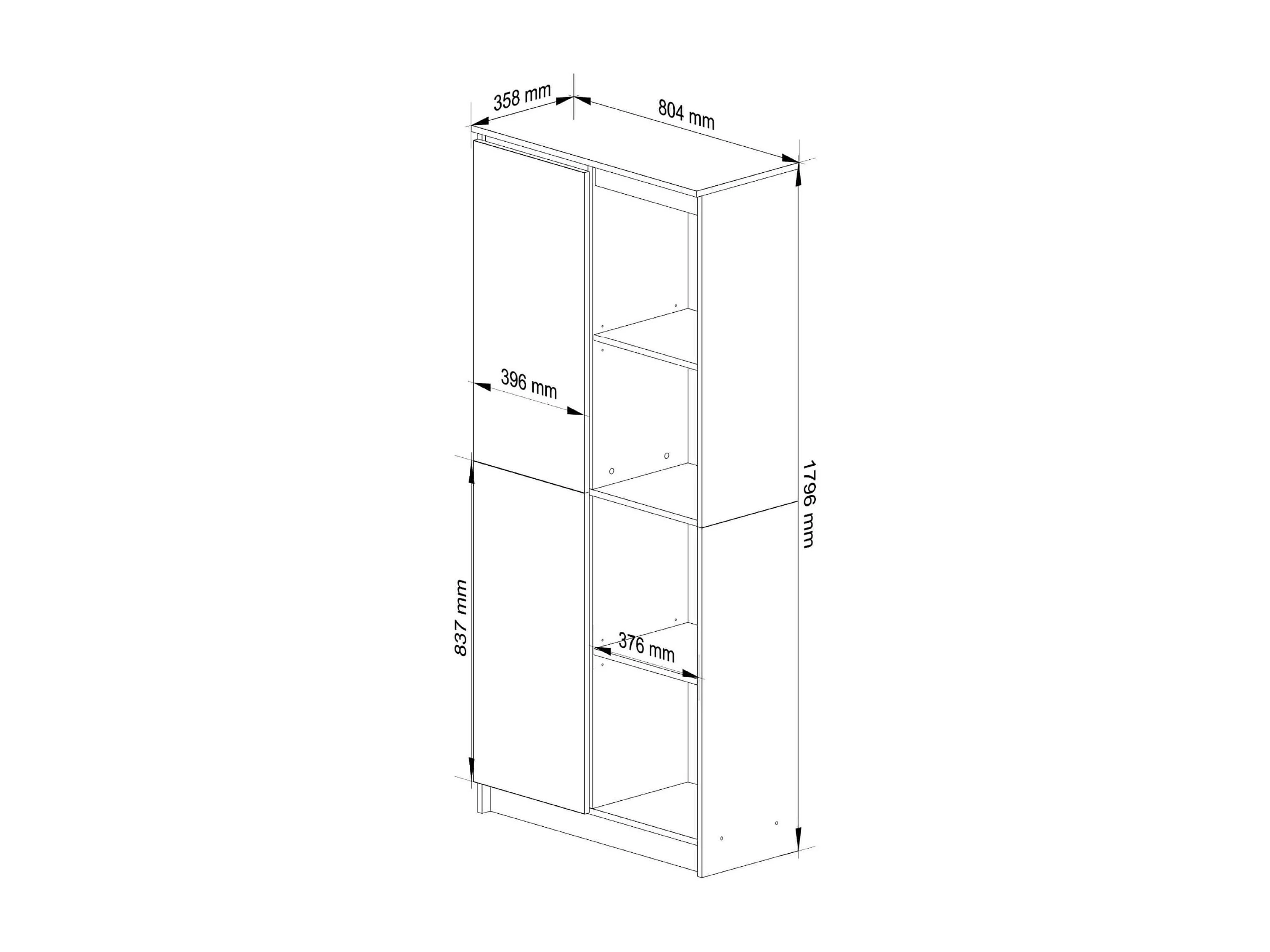 Bibliothèque de bureau AKORD R80 Chêne Sonoma 80 cm 1 porte façade Blanche mat 8 étagères 80x35x180 cm