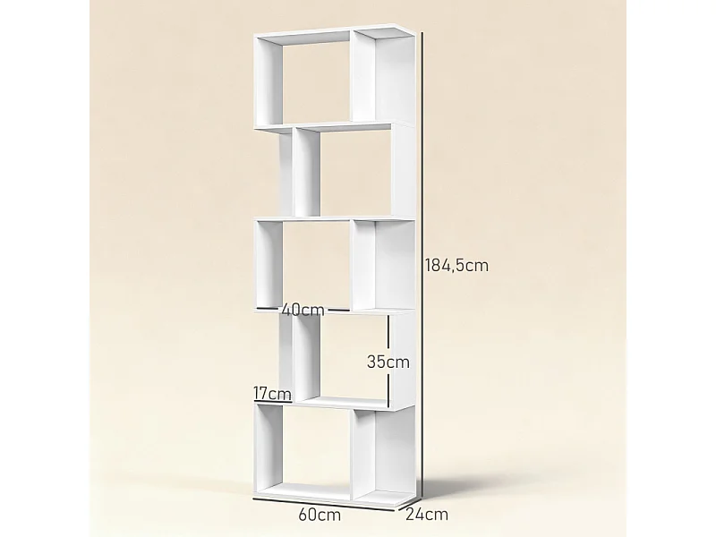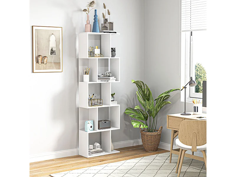 Bibliothèque étagère 6 niveaux design zig zag dim. 60 x 21 x 162,5 cm effet bois blanc