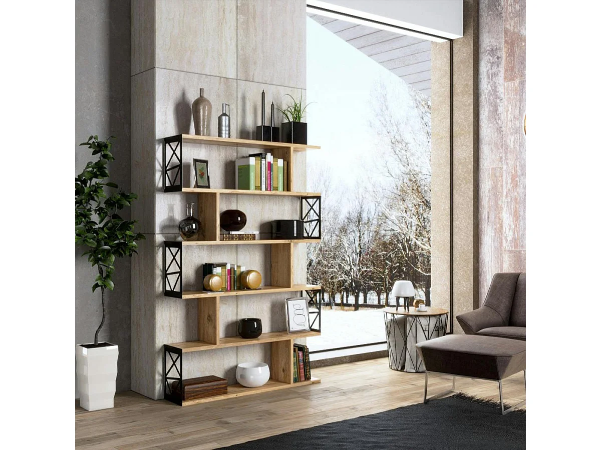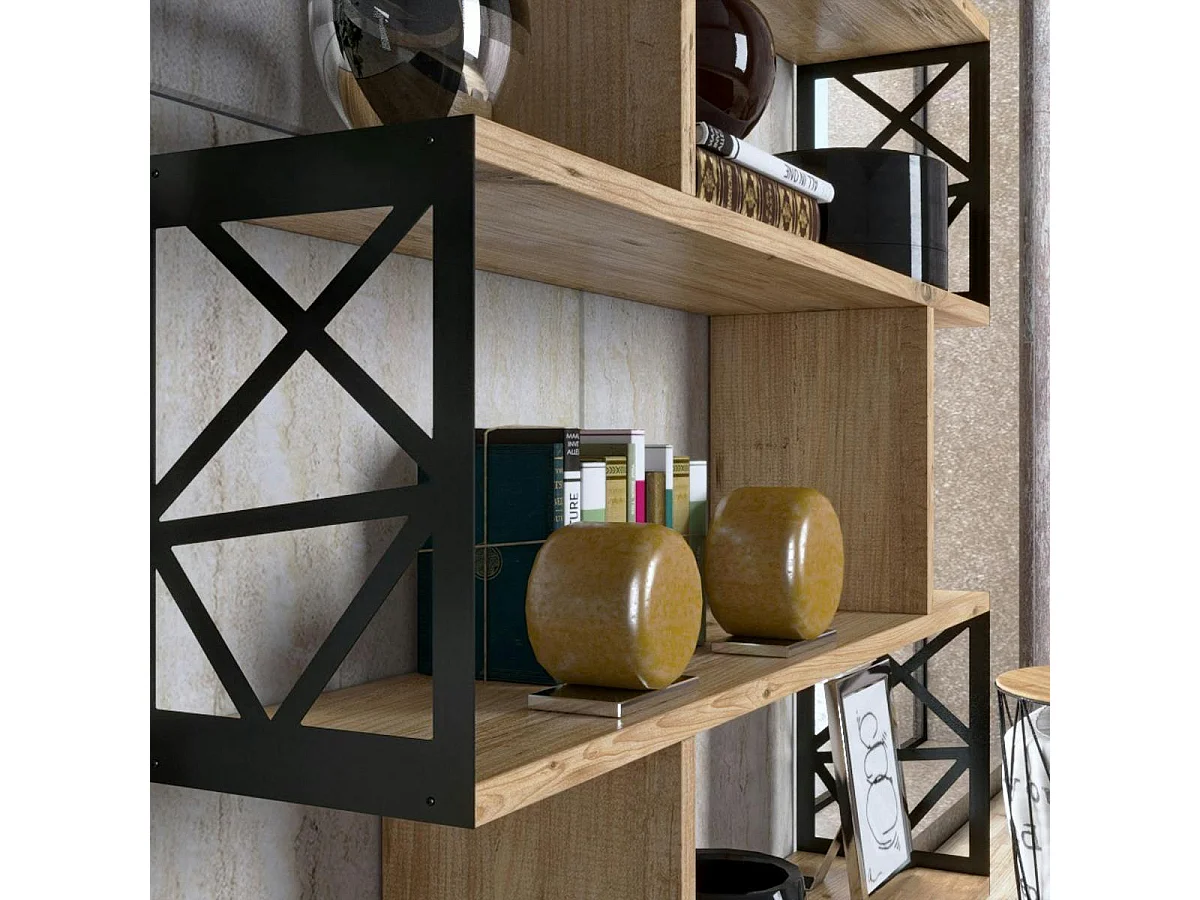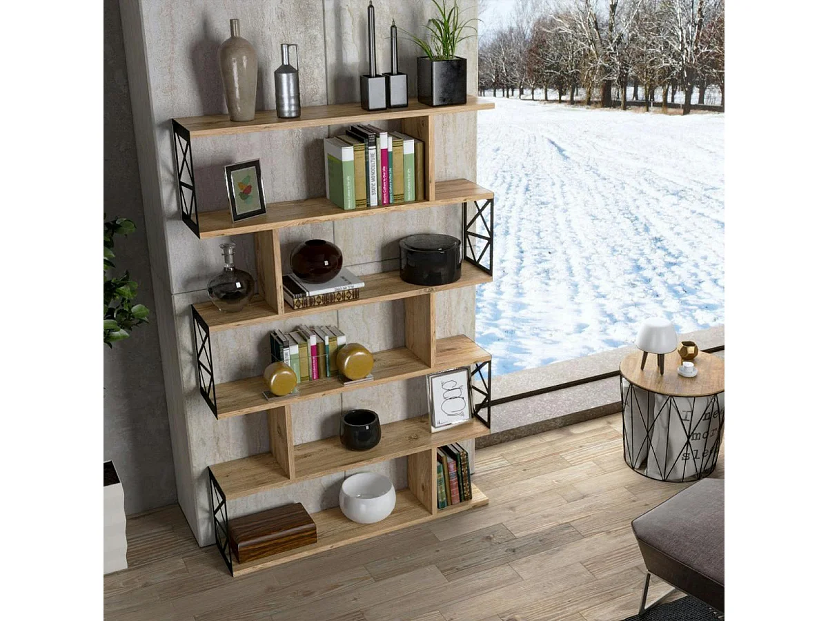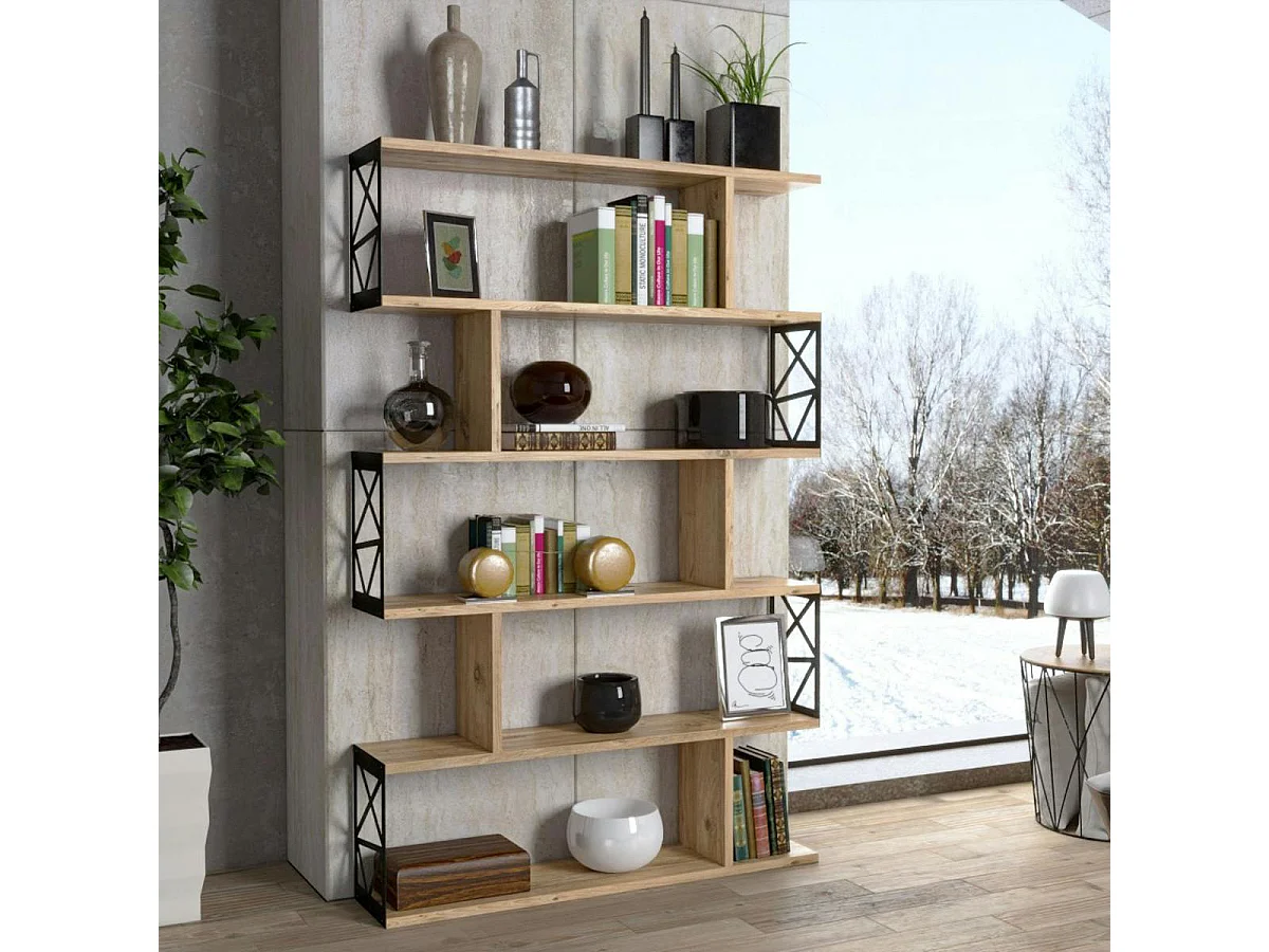 Bibliothèque déstructurée effet pin, cadres métal noir JENA