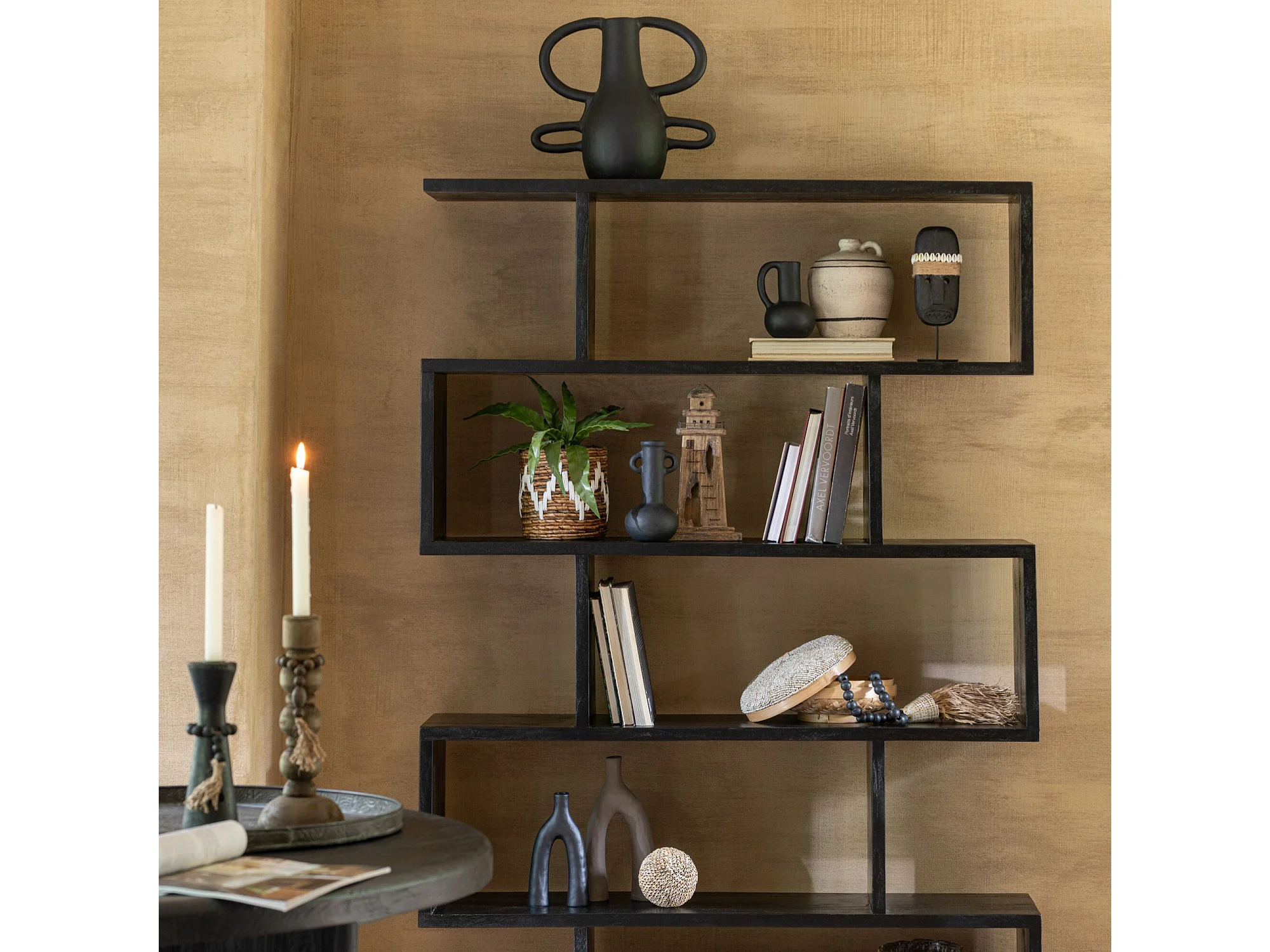 Bibliothèque déstructurée en manguier 5 niches - MAKATI