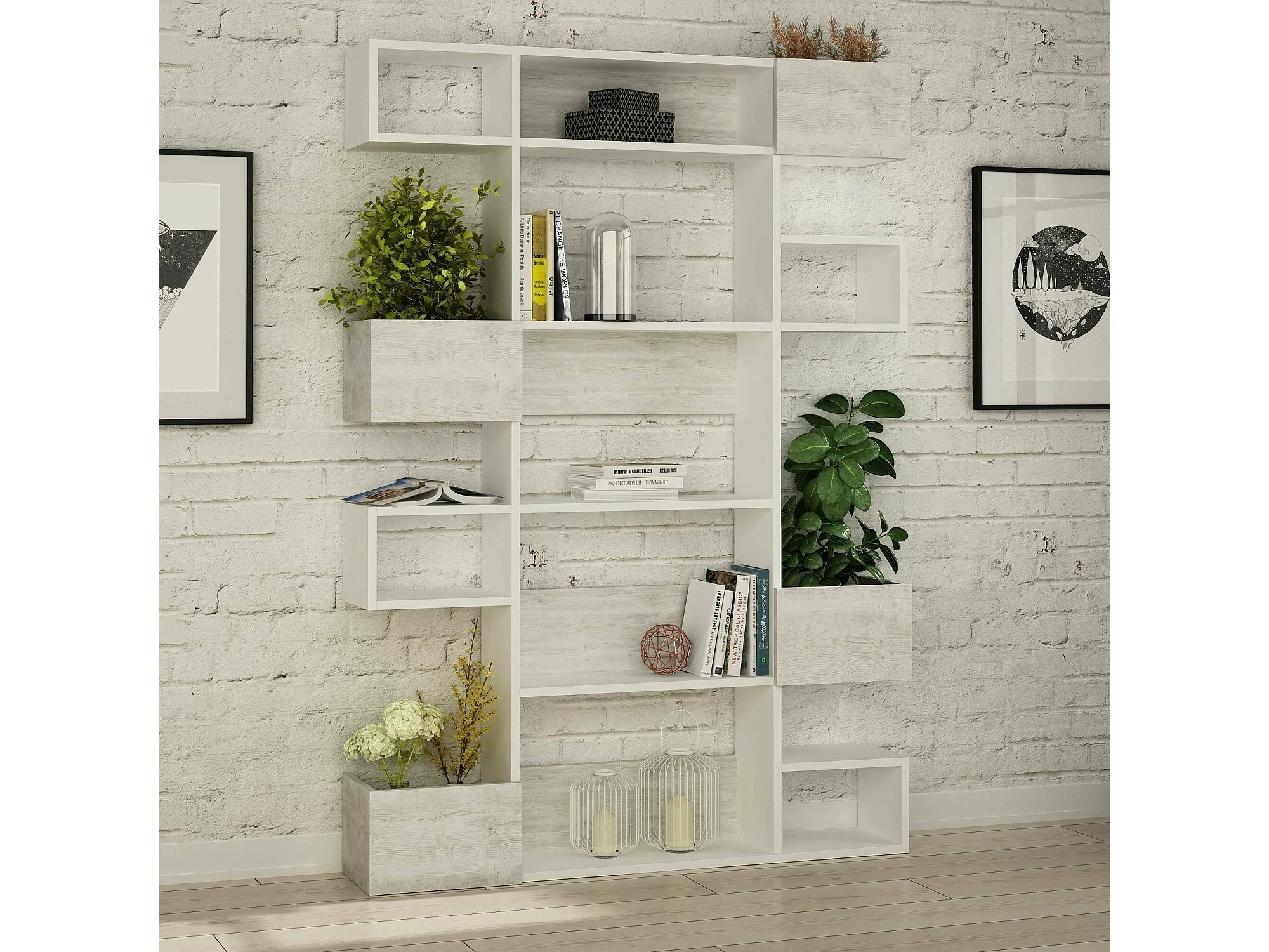 Bibliothèque Dmastrantoni, Etagère de bureau, Porte-livre mobile, Librairie, 120x20 h171 cm, Blanc
