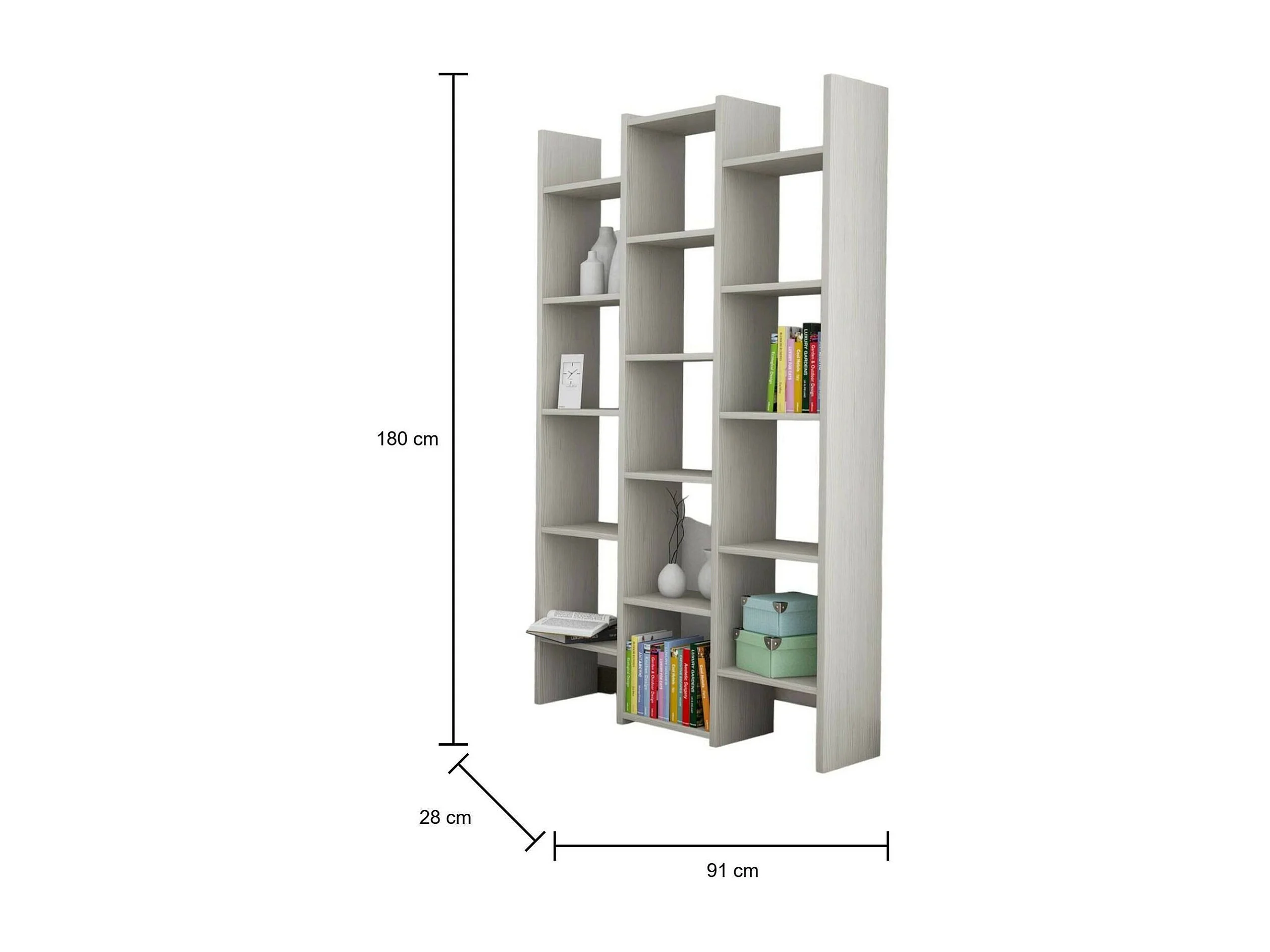 Bibliothèque Drecagn, Etagère de bureau, Porte-livre mobile, Espace de rangement, Made in Italy, 91x28h180 cm, Gris clair