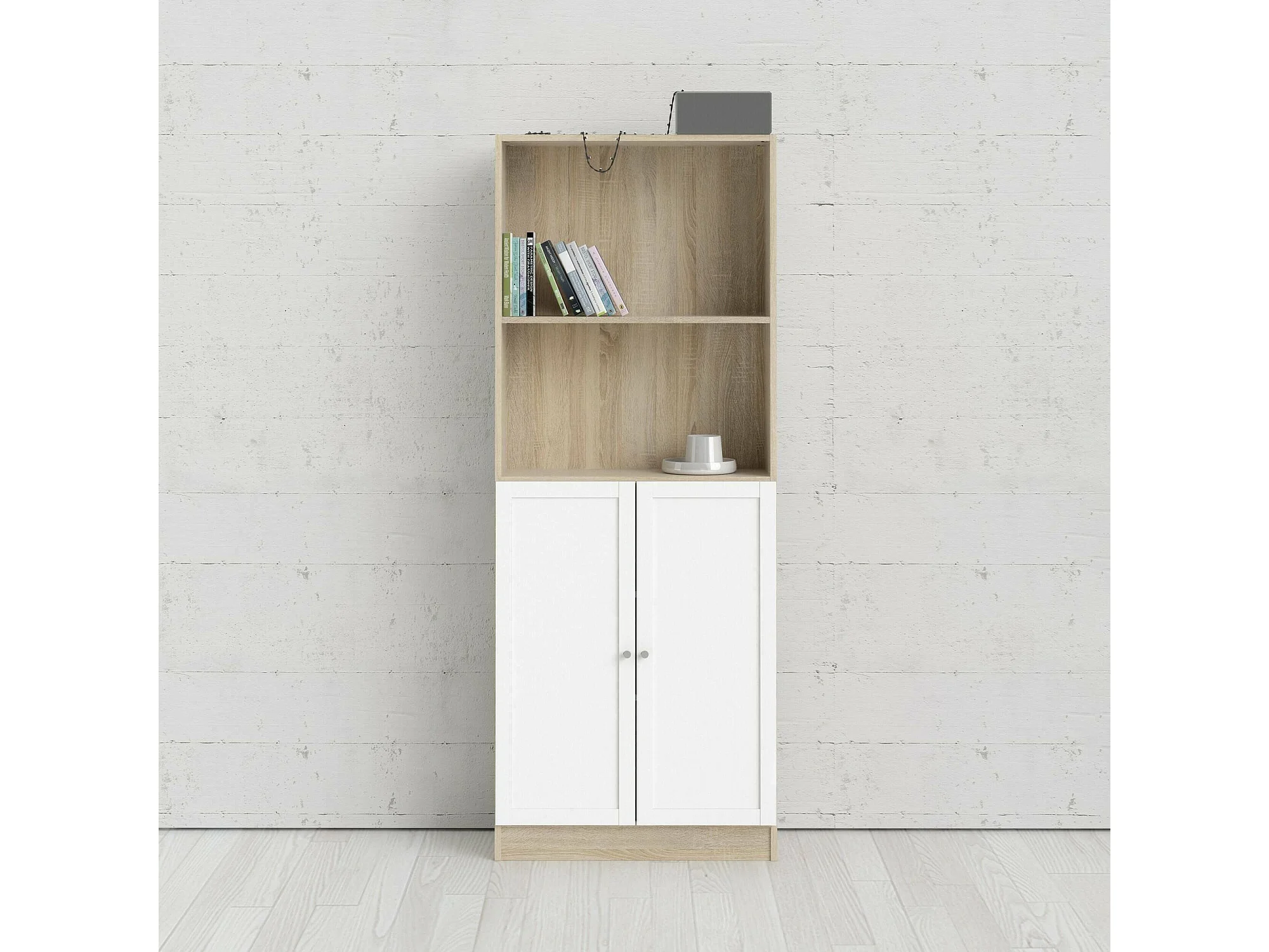 Bibliothèque Dsoffrid, Etagère de bureau, Porte-livre mobile, Librairie, 79x28 h203 cm, Chêne et Blanc