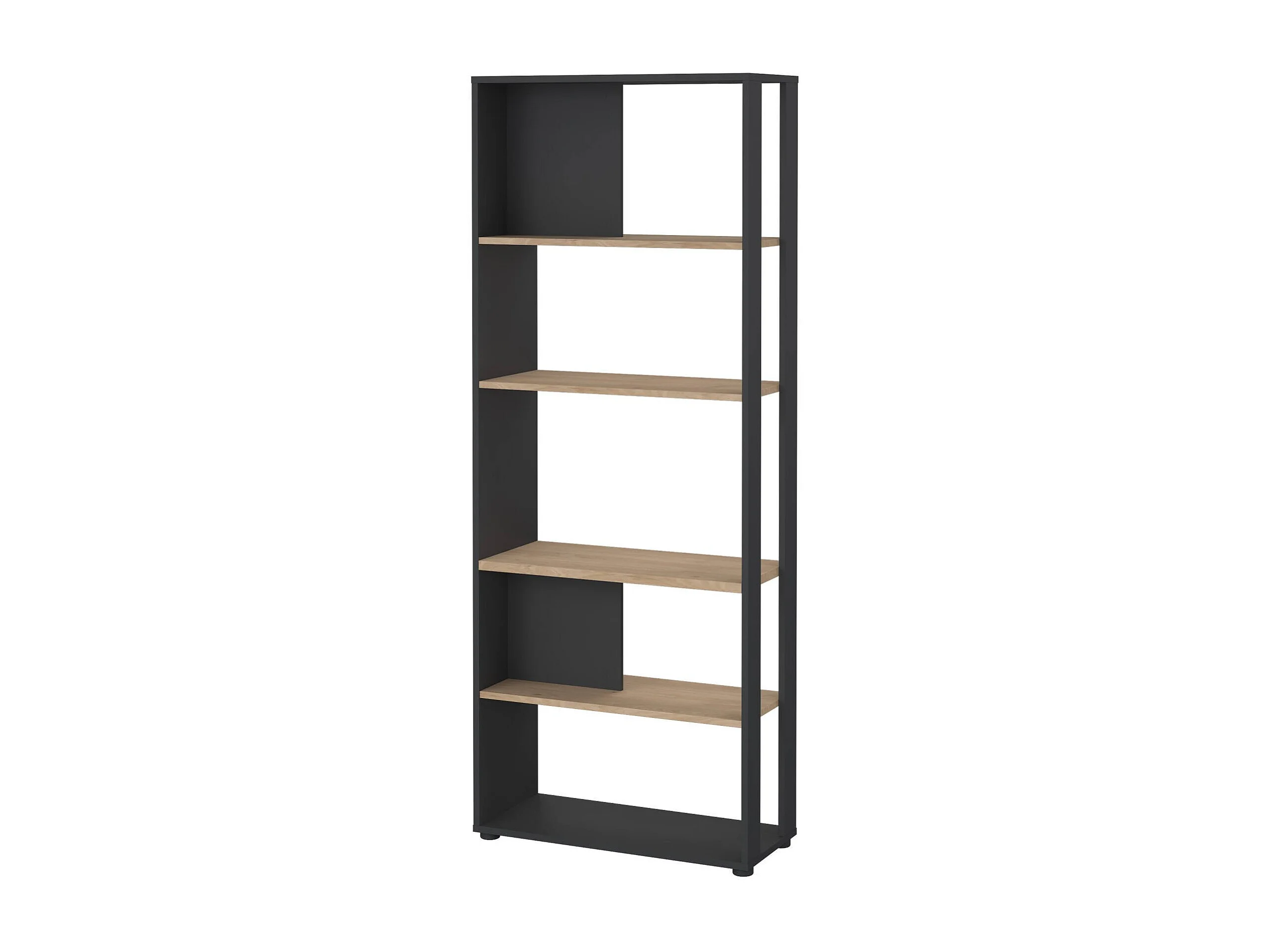 Bibliothèque Dspelt, Etagère de bureau, Porte-livre mobile, Librairie, 80x34 h205 cm, Chêne et Gris