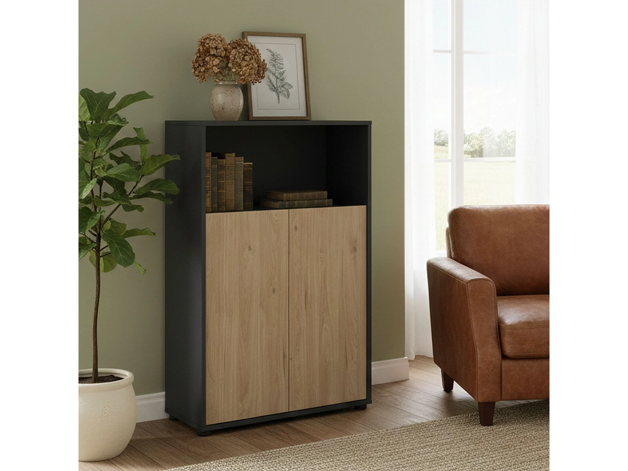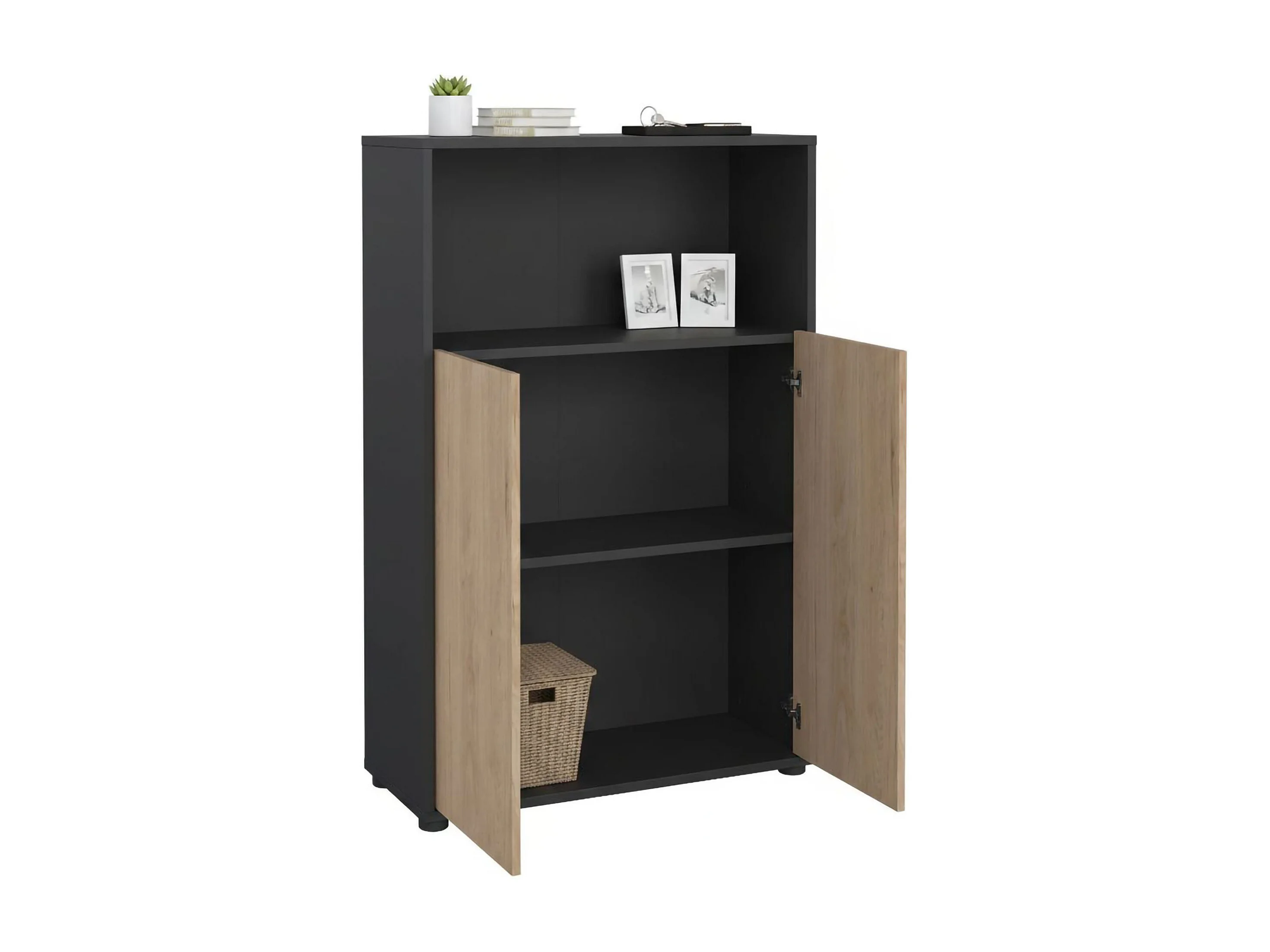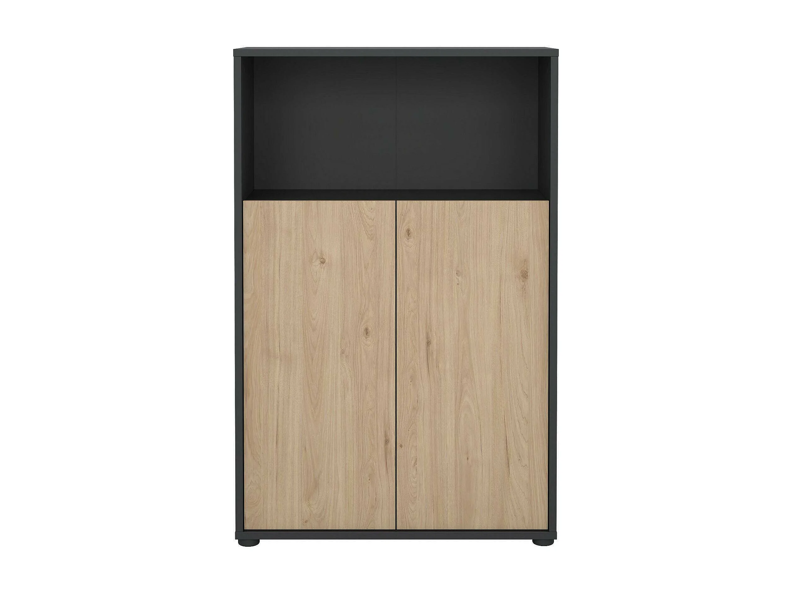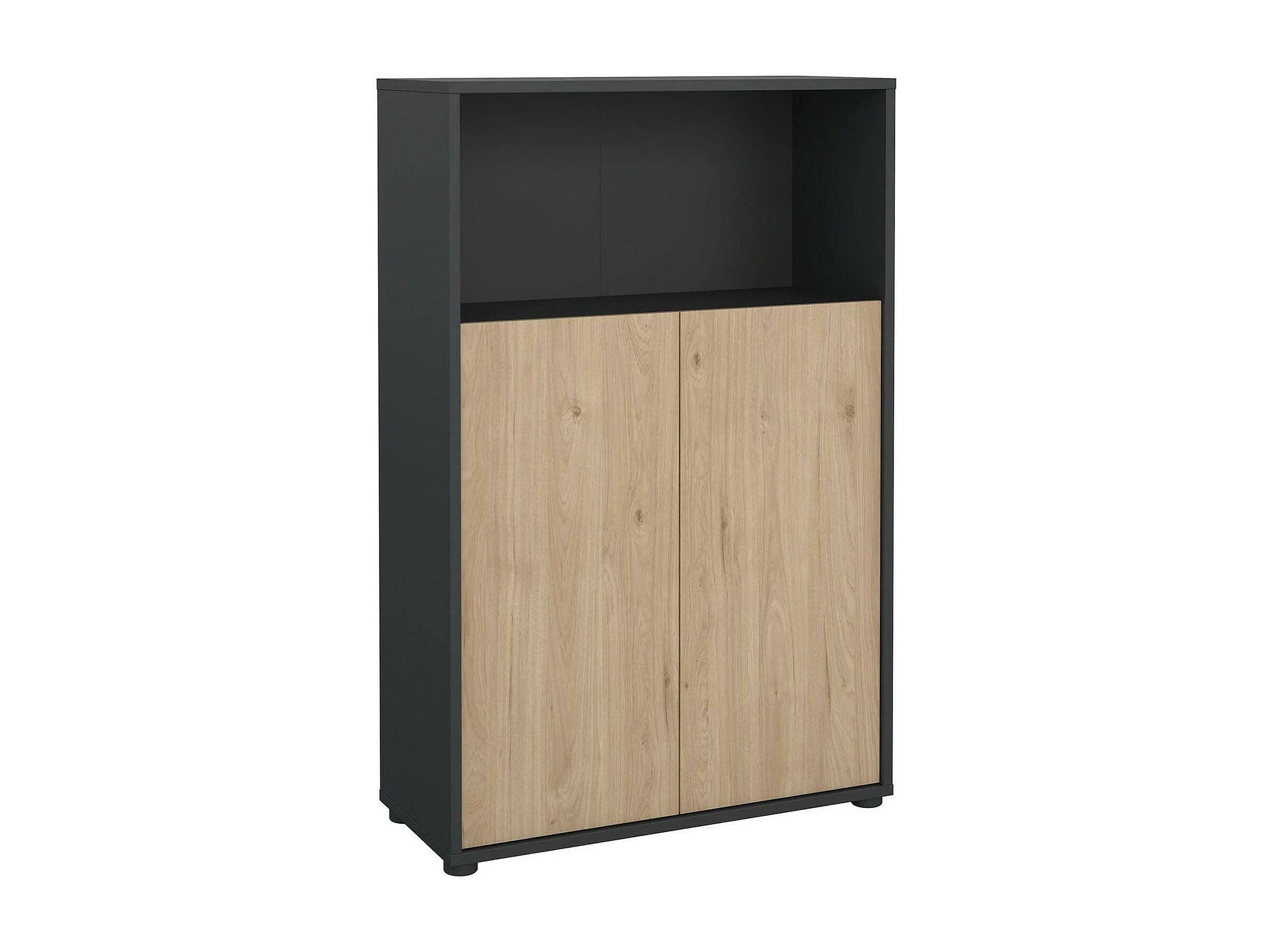 Bibliothèque Dtass, Etagère de bureau, Porte-livre mobile, Librairie, 80x34 h124 cm, Chêne et Gris
