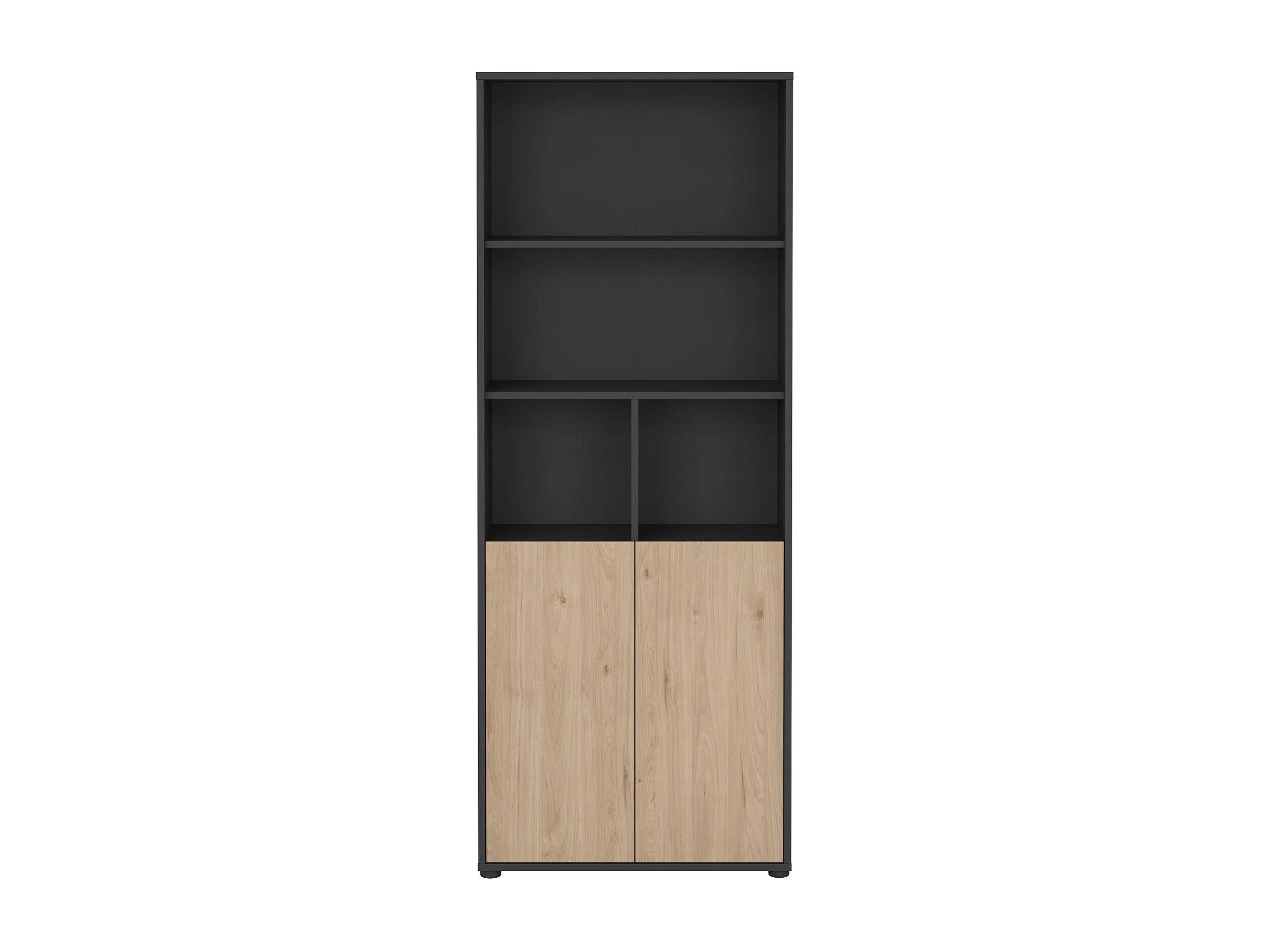 Bibliothèque Dtassott, Etagère de bureau, Porte-livre mobile, Librairie, 80x34 h205 cm, Chêne et Gris