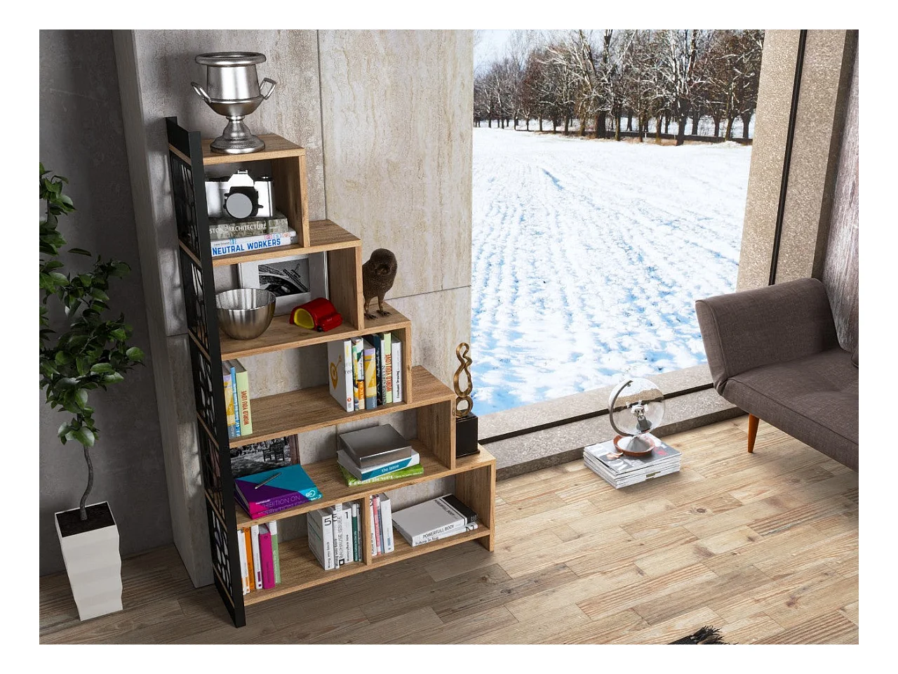 Bibliothèque en aggloméré et métal Francis Modèle 3