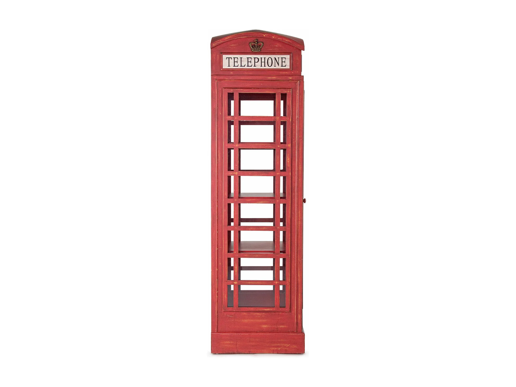 Bibliothèque en bois cabine téléphonique portes en verre 3 tablettes - LONDON