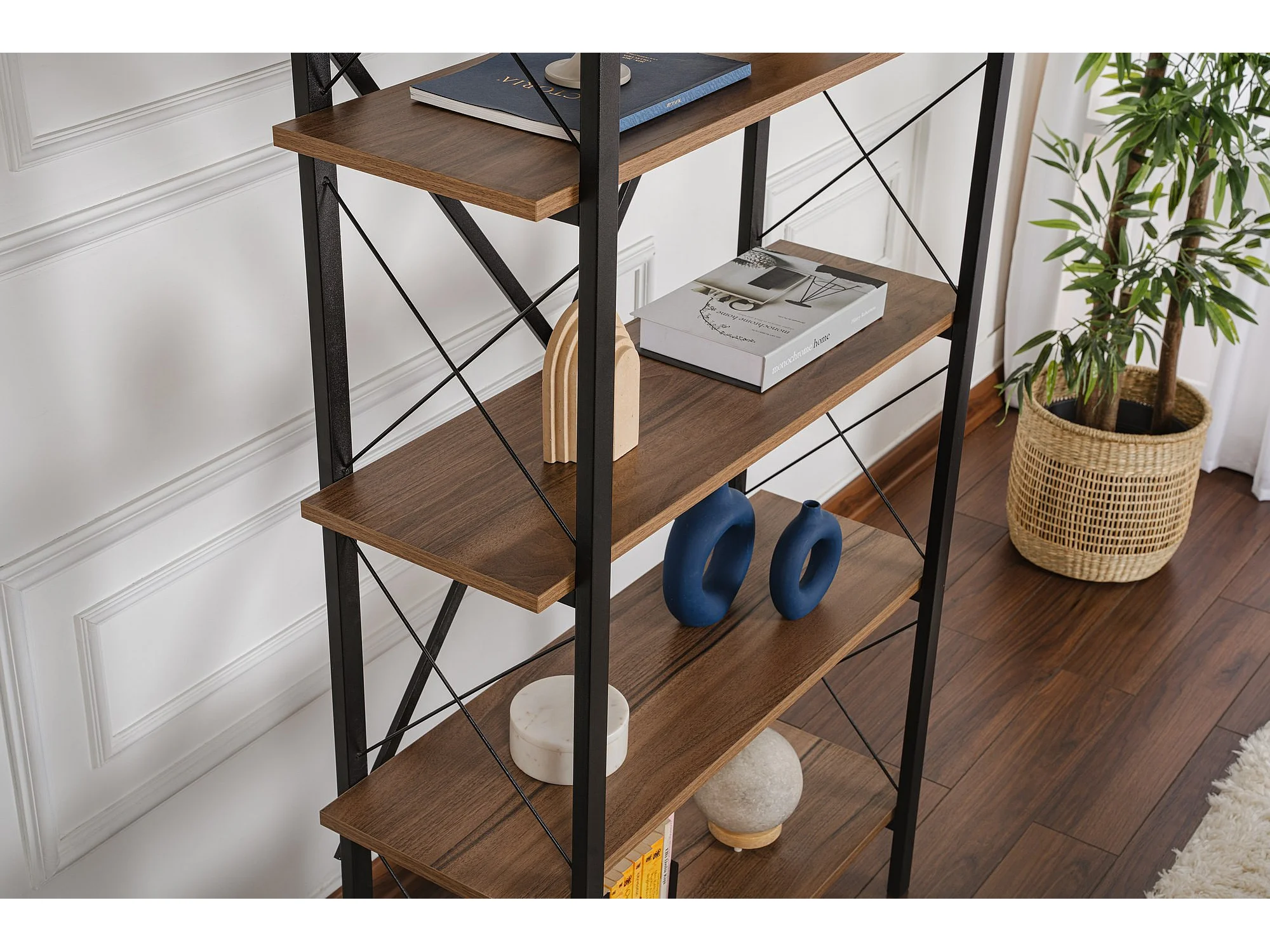 Bibliothèque en bois "Elysian" - 90 x 33 x 180 cm - NoyerNoir