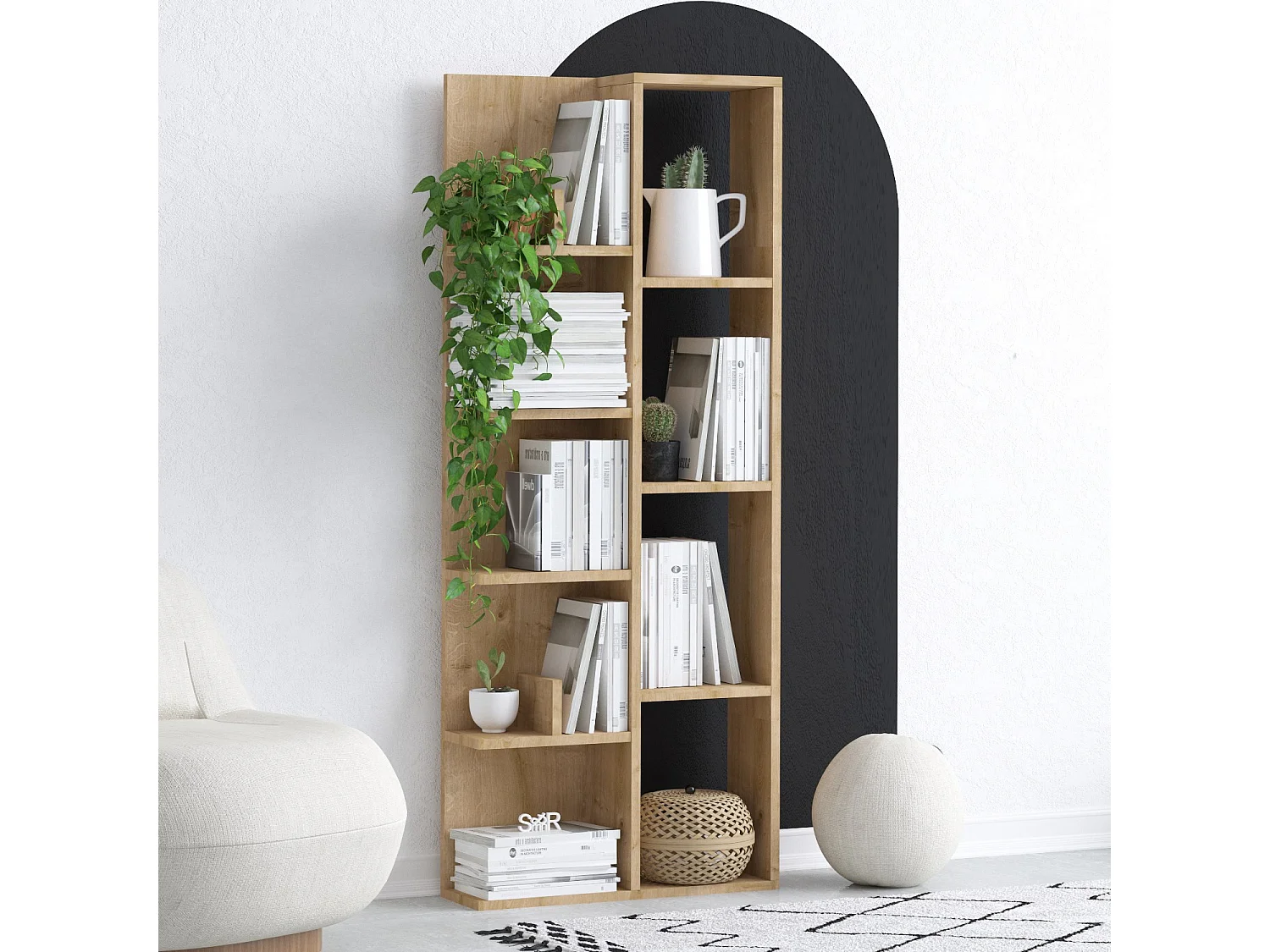 Bibliothèque en bois "Sule" - 42 x 20 x 89 cm - Chêne