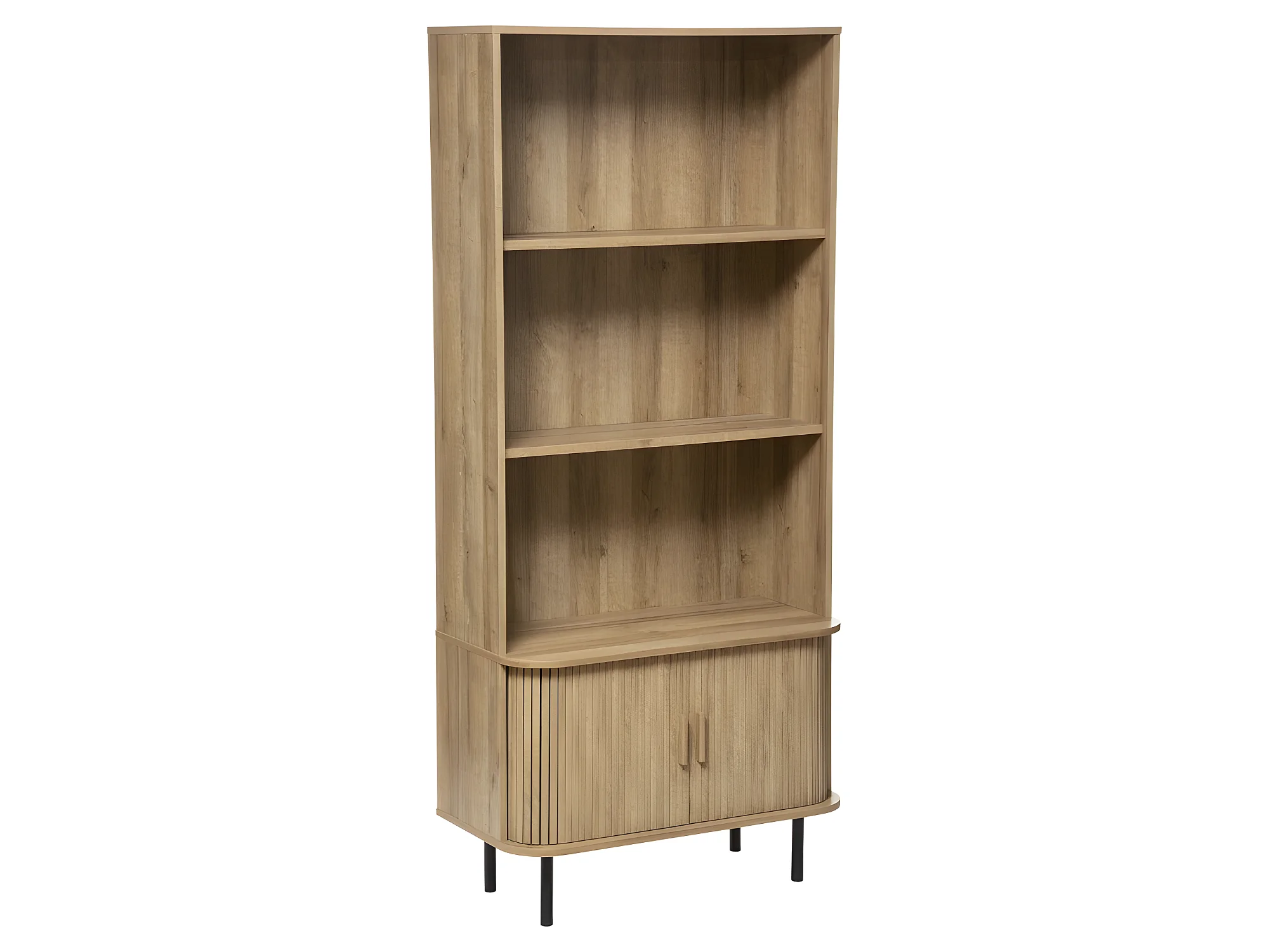 Bibliothèque en bois MDF naturel et acier coloris noir - Longueur 80 x Profondeur 39 x Hauteur 179,6 cm