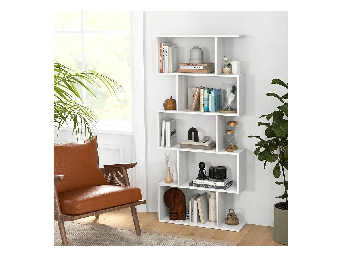 Etagère bibliothèque organique effet bois blanc plusieurs niches 8 compartiments