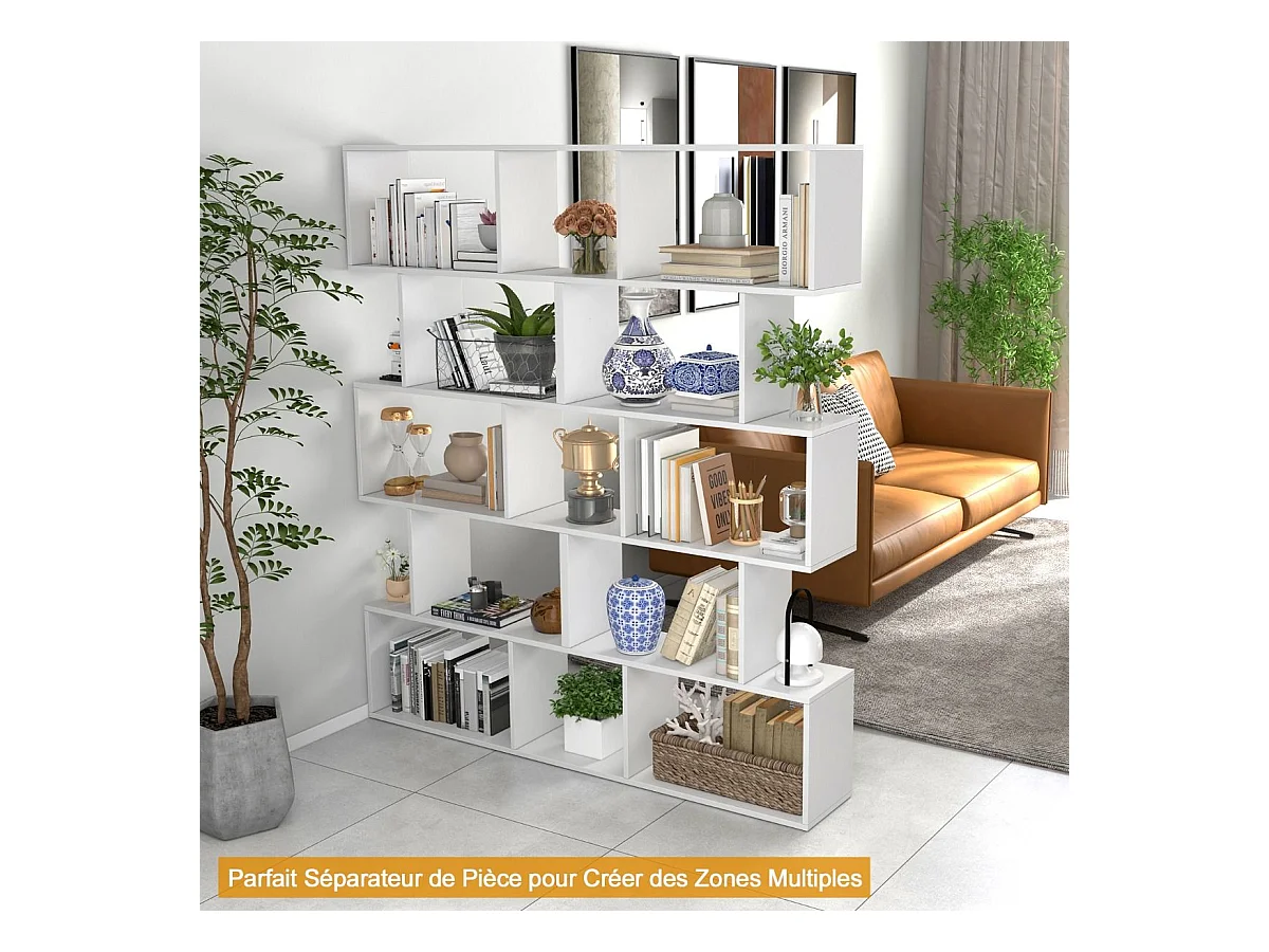 Bibliothèque à 11 cubes, avec compartiments,kits anti-basculement,24 x 74 x 106 cm, blanc