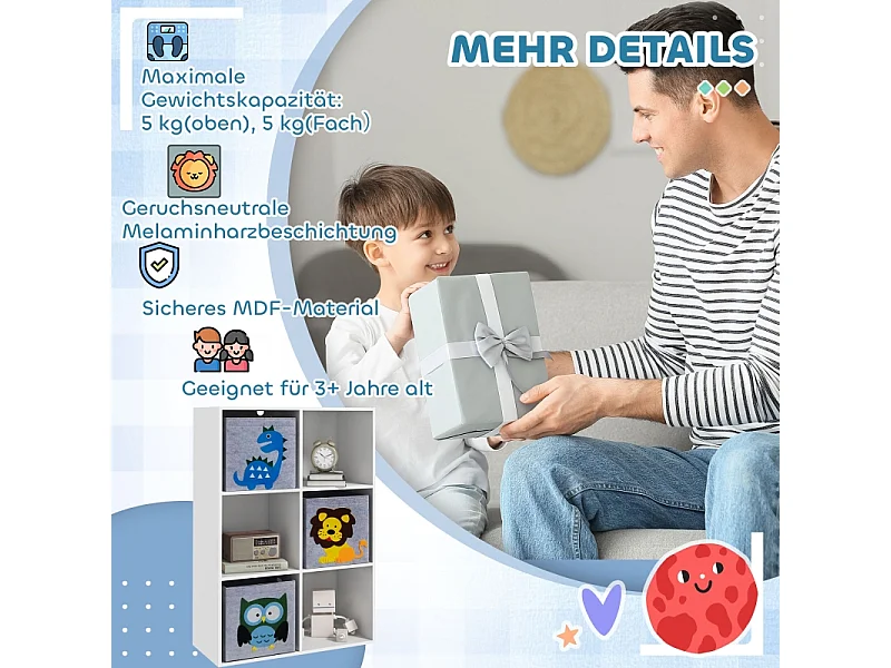 Bibliothèque enfant avec 3 boîtes de rangement, étagères, en MDF, blanc et gris (61.8x29.9x91.5 cm)
