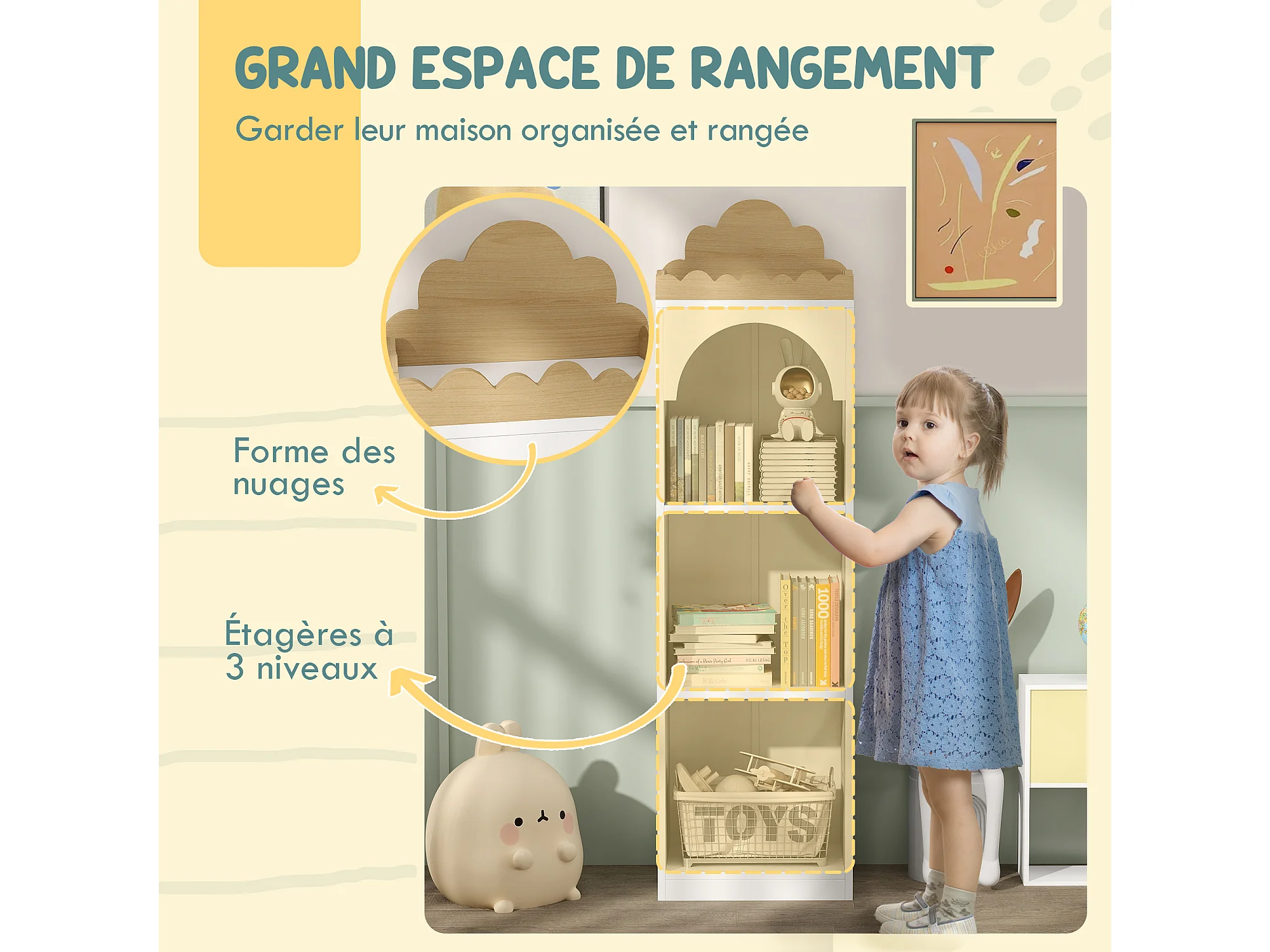 Bibliothèque enfant design nuage - 4 niveaux rangement - bois de pin MDF blanc