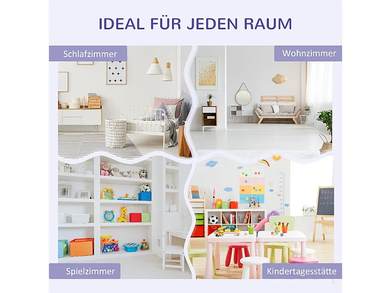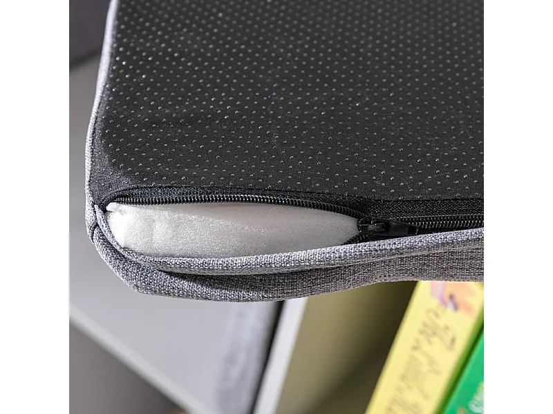 Bibliothèque enfant avec siège, 6 compartiments, MDF, blanc et gris, avec coussins (103x30x62 cm)